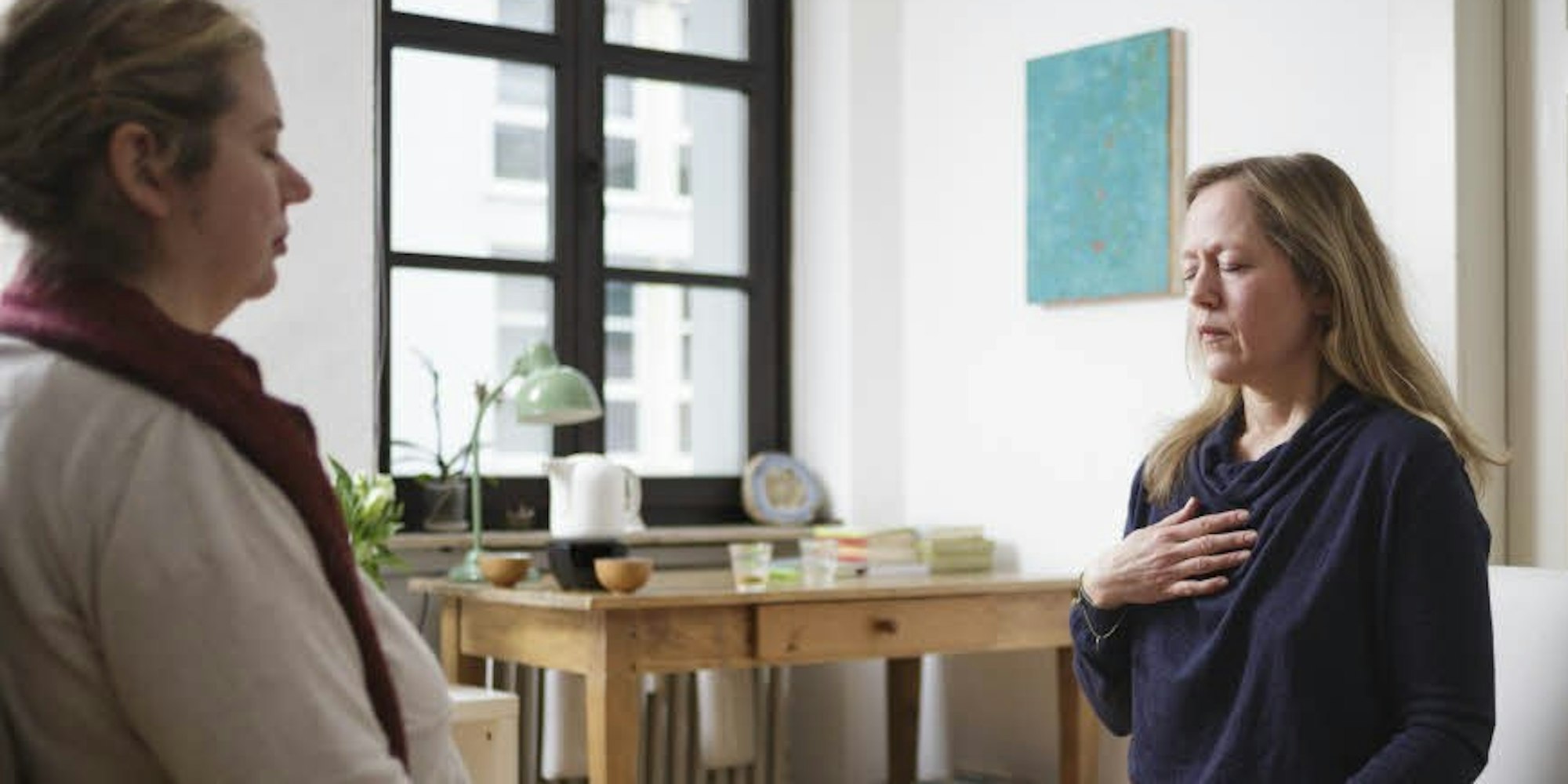 Die Konzentration auf den Atem leert den Kopf und macht ihn frei. Veruschka Vennebusch (r.) nimmt die Autorin mit auf eine Reise durch den Geist.
