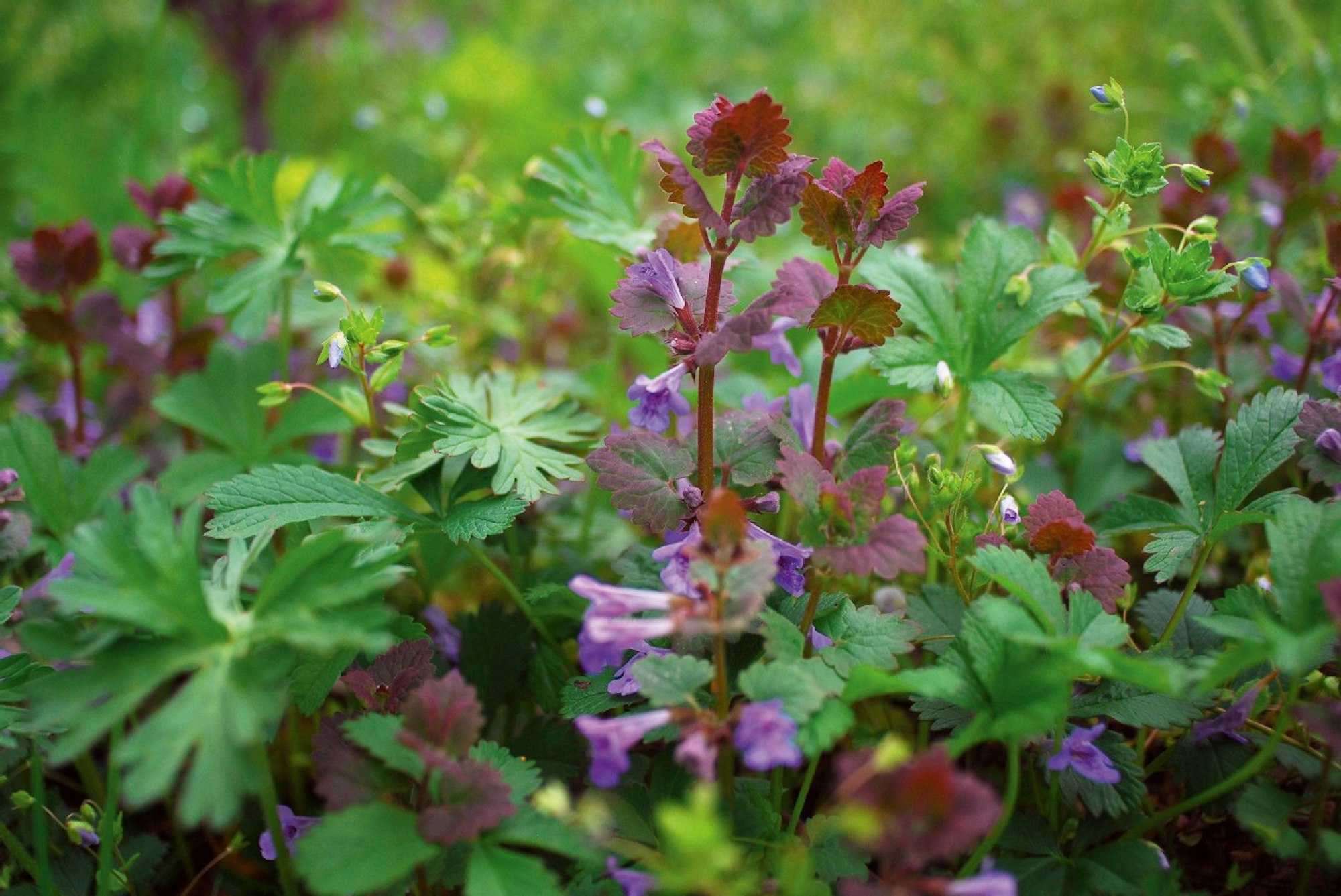 Unkraut Gundermann: Die Pflanze blüht violett, hat runde bis nierenförmige Blätter mit gekerbtem Rand und bildet Ausläufer.