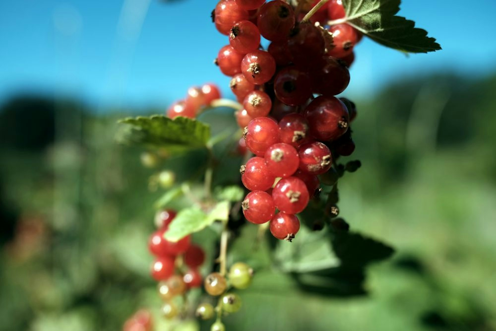 Sonnengeküsste und reife Johannisbeeren, die auf die Ernte warten.