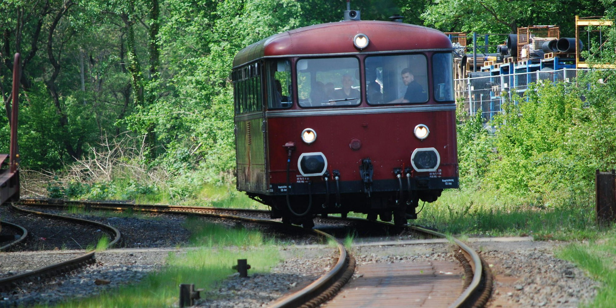 30 Frauen und Männer aus dem Münsterland freuen sich auf die Fahrt mit der Kasbachtalbahn hinauf nach Kalenborn. Oder genauer bis zur Brauerei Steffens, die kurz hinter der ersten Steigung hinauf in den Westerwald eine Gaststätte betreibt. Der Diesel wummert. Jürgen Spiller sitzt am Steuer und bringt den Oldtimer auf Touren. „Nicht schneller als 30“, sagt er. Die Strecke hat ein paar Besonderheiten.
