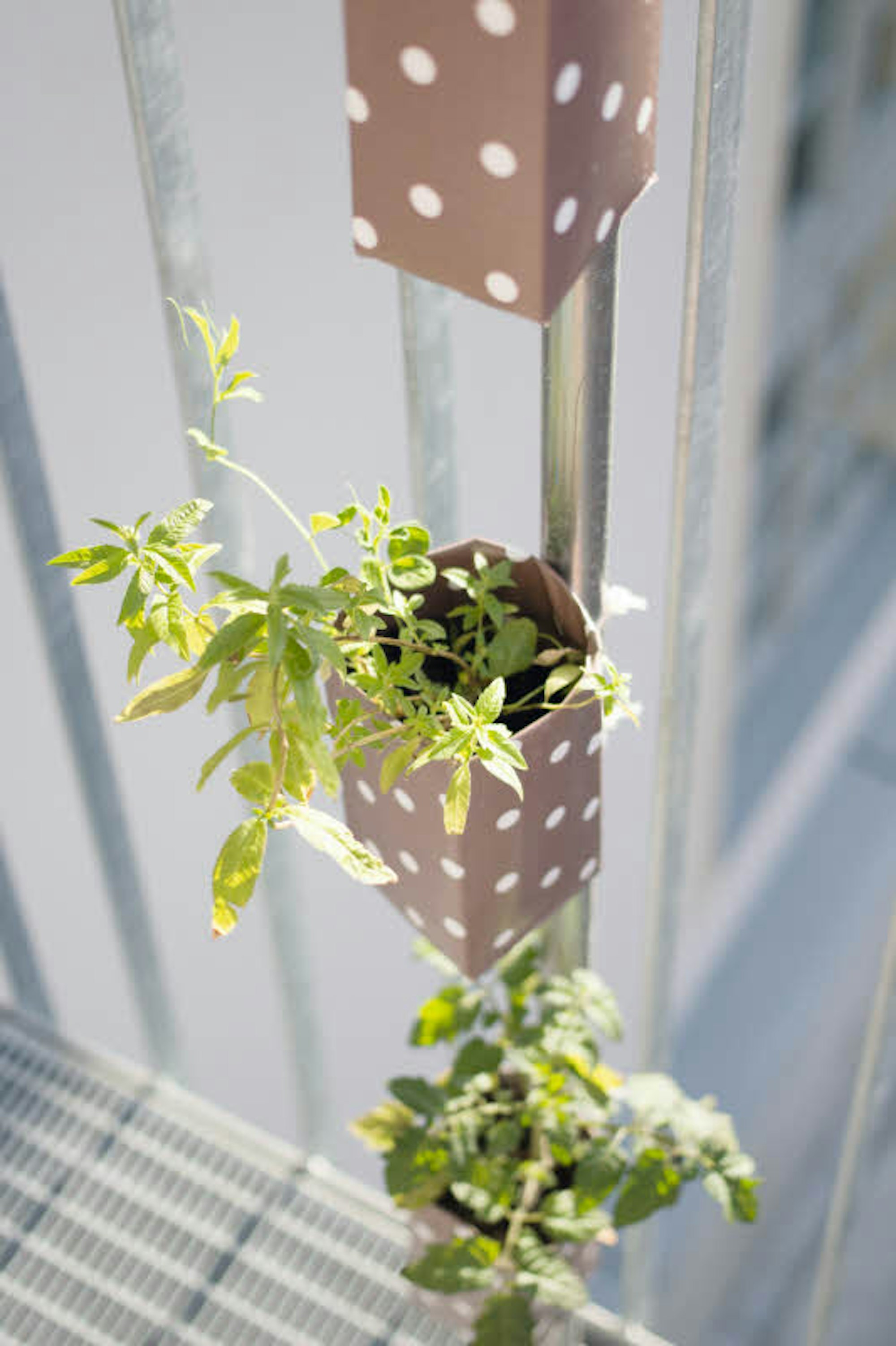 Sind noch Pflanzen übrig, aber keine schönen Töpfe mehr zur Hand? Geben Sie leeren Milch- und Safttüten ein neues Leben, rät Autorin Silvia Appel. Schneiden Sie sie ab und bekleben sie mit Folie. Stechen Sie Löcher in den Boden, damit Wasser abfließen kann. Die leichten Behälter können mit Kabelbinder an Streben befestigt werden. In ihnen fühlen sich kleine Kräuterpflanzen wie Zitronenverbenen oder auch Chilis wohl.
