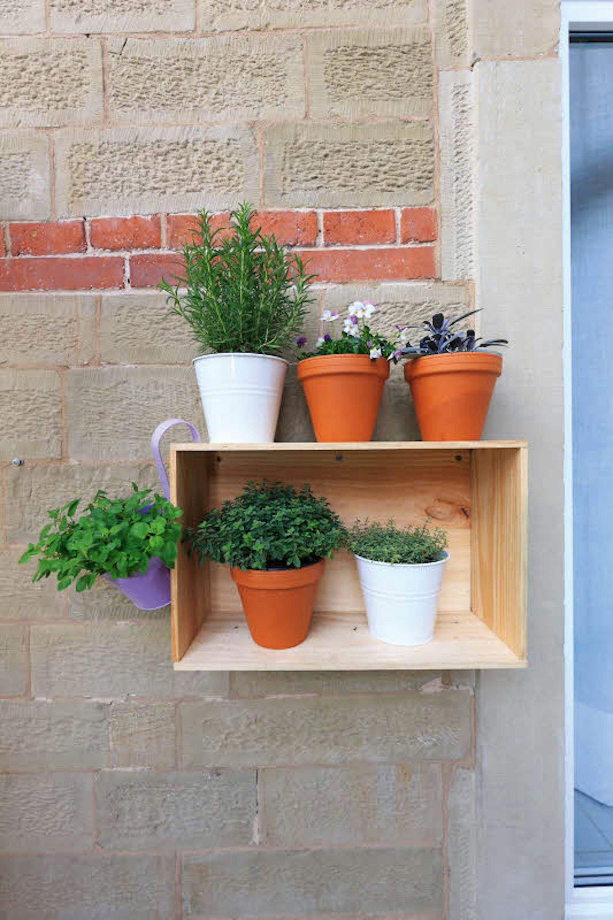 Sie haben wenig Platz, aber eine freie Wand? Eine angedübelte Kiste lässt sich vielseitig verwenden: als Topfdepot und Kräuterregal zum Beispiel. Gut eignen sich stabile alte Weinkisten. Ist der Balkon Regen ausgesetzt, lasieren Sie die Kiste, rät Folko Kullmann. Wohnen Sie zur Miete, fragen Sie den Vermieter, bevor Sie an die Fassade dübeln.