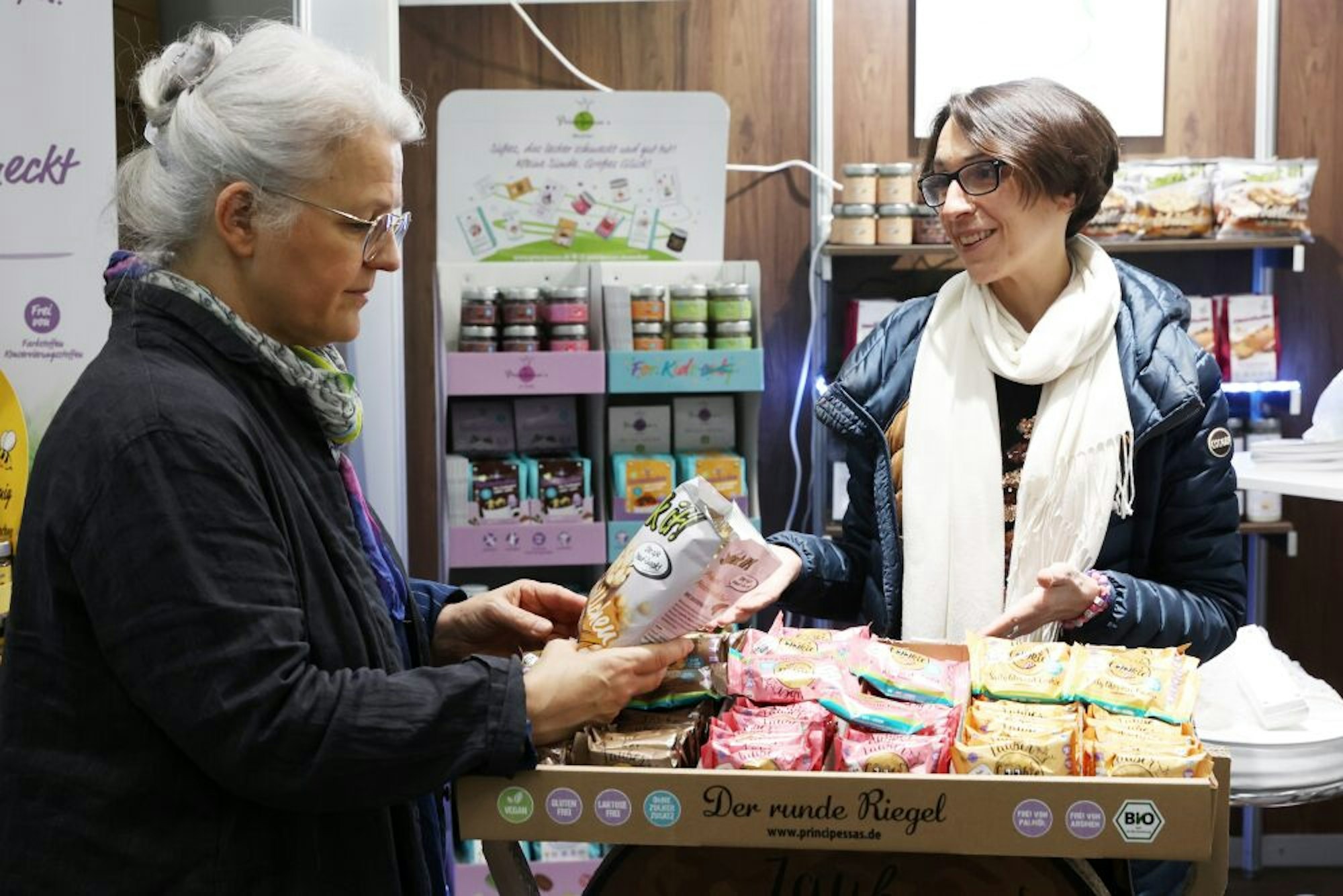 Freilich versteckt sich der Zucker nicht nur in Getränken. Wir stehen bei einem Münchner Start-up, das „Süßes, das lecker schmeckt und guttut“ propagiert. Die Honigalternative ist – anders als deklariert – nicht wirklich zuckerfrei. „Das ist kein „good food“, bemängelt die Expertin. „Der lösliche Ballaststoffsirup aus Tapioka, das ist Zucker!“