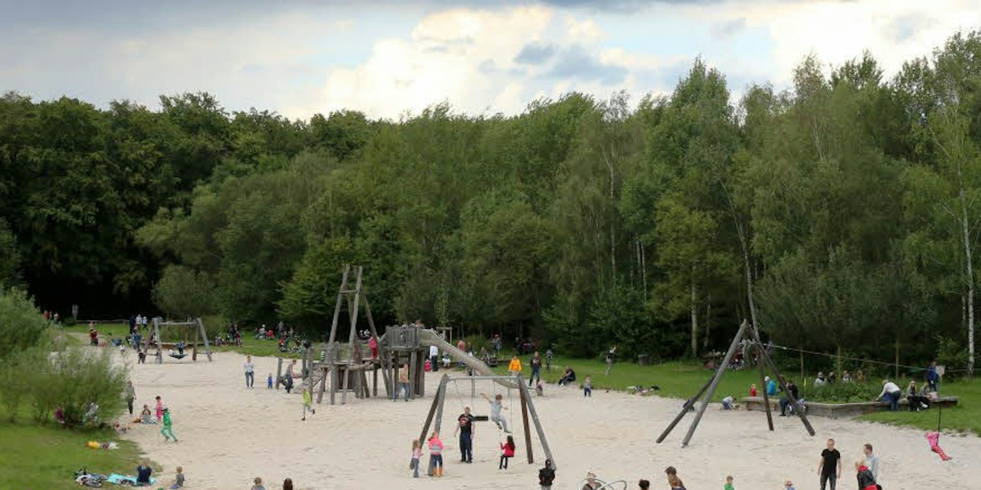 15.28 Uhr Vor der Seilbahn sitzen drei blonde Mütter mit Sonnenbrille. Dana, Johanna und Yvonne sind in Köln zusammen zur Schule gegangen, längst leben sie verstreut im Umland; und treffen sich, wann immer das Wetter es am Wochenende zulässt, auf dem Spielplatz in der Wahner Heide, um bei Kaffee und Keksen über Kinder und Männer zu reden. „Heute eher über Männer“, sagt Dana, guckt zu ihrer Freundin und lacht ein bisschen gequält. „Man hat hier etwas Zeit für sich, weil das Gelände sehr groß ist und es für jedes Alter Spielgeräte gibt.“ Die sechs Kinder, alle zwischen drei und acht, schwirren irgendwo rum, „Hauptsache nicht Richtung Autobahn oder Wald, da laufen wir dann doch hinterher“.