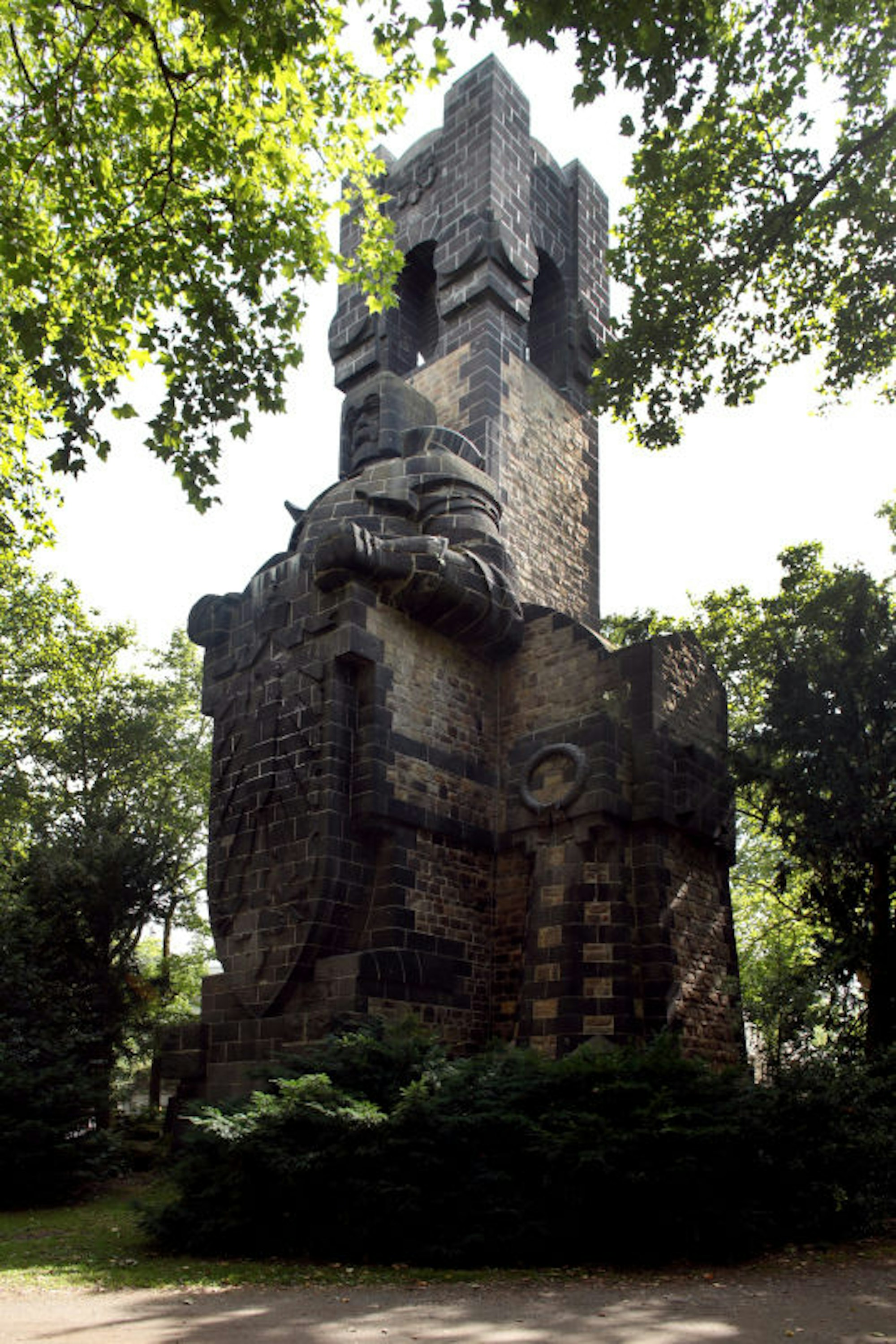 Der Blick auf die Bismarcksäule im Kölner Stadtteil Marienburg.
