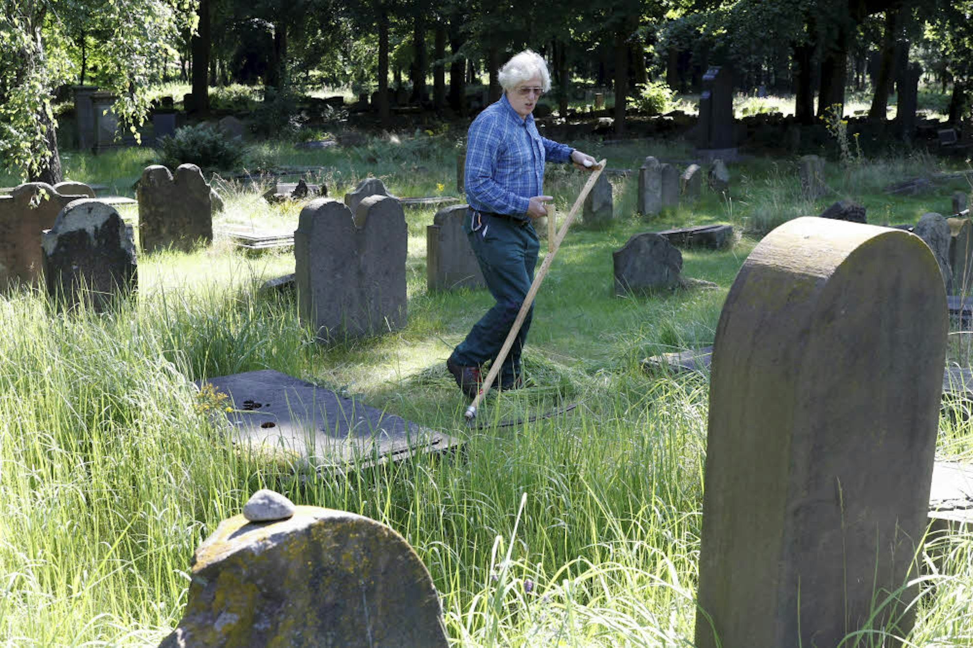Friedhofsgärtner Erich Reichart senst die Wiesen von Zeit zu Zeit, um sie auszumagern und die Artenvielfalt zu vergrößern.