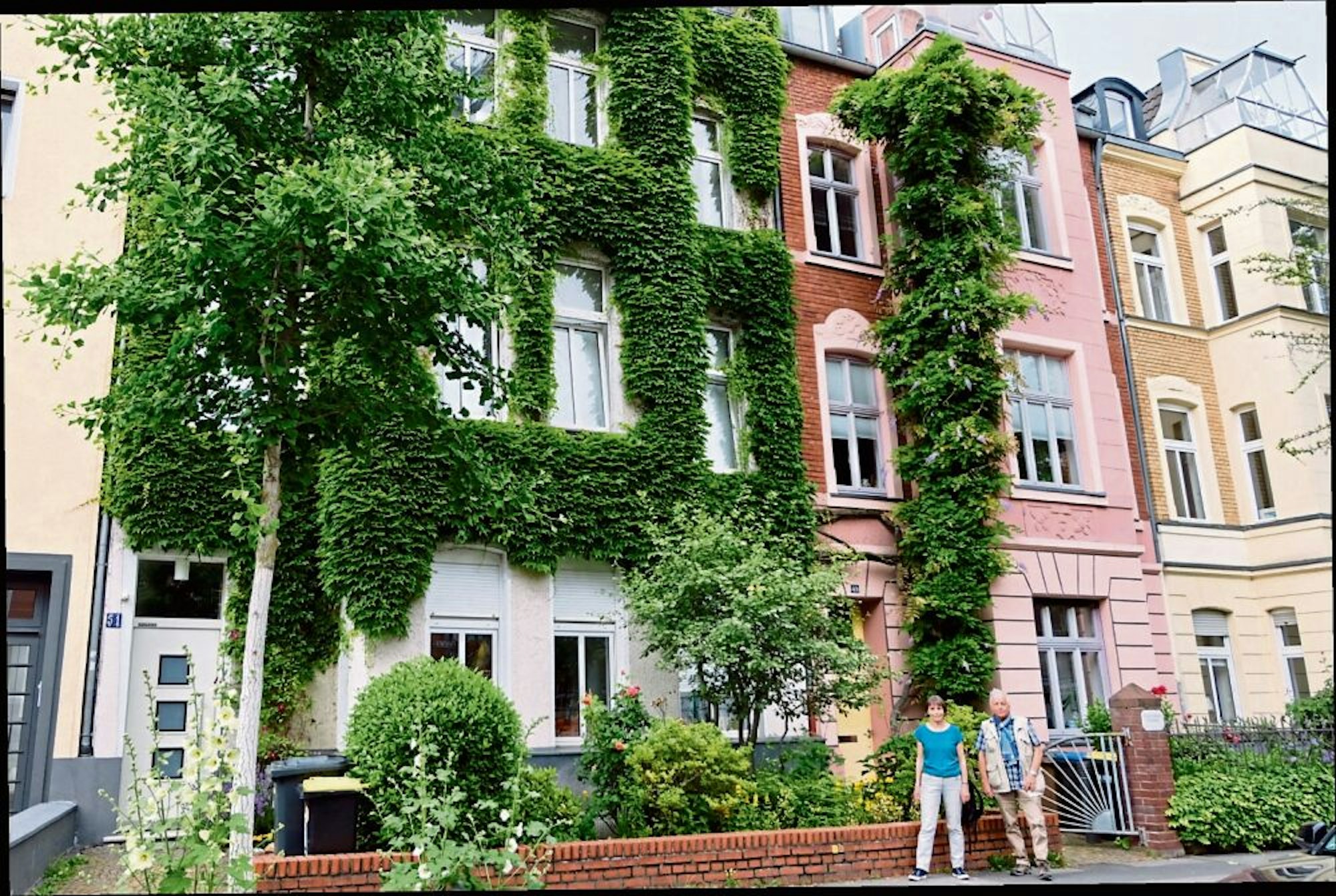 Ulla Theisling von der Nachbarschaftsinitiative Sülz und Ludwig Arentz, Mitglied des Stiftungsrats und Mitbegründer der Bürgerstiftung Köln, präsentieren das schmucke Fassadengrün sowie andere bewucherte Häuserwände und -dächer mit einem neuen Format namens „Fassadenspaziergänge“, die sie durch Sülz anbieten. Sie haben dafür einen Grund: Die Teilnehmer sollen sich für die grünen Fassaden und Dächer im Viertel begeistern und dadurch dazu inspiriert werden, selbst ihr Haus zu begrünen oder bei dessen Eigentümer um Erlaubnis zu bitten, dies zu tun.