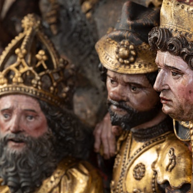 Das Ergebnis sind großformatige Drucke, spielend mit Kontrasten von heller Farbe auf schwarz grundierter Fläche. Manche entwickeln sich weiter zu objekthaften „Hölzern“, vergoldet und überirdisch, balancierend auf der Grenze zur Transzendenz. Man erkennt auf den Fragmenten Körperumrisse, ein Gesicht, Kopfhaar, das Geäst eines Zweigs. Aber auch Stadtlandschaften und Zitate aus der Kunstgeschichte, fotografisch festgehalten in Museen oder als Skizze auf Papier.