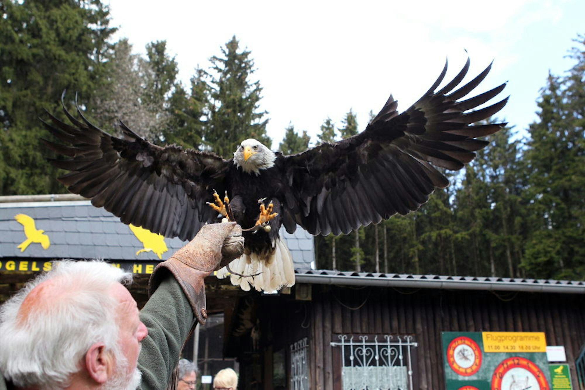Eine Flugshow mit Greifvögeln gibt es im Wildfreigehege.
