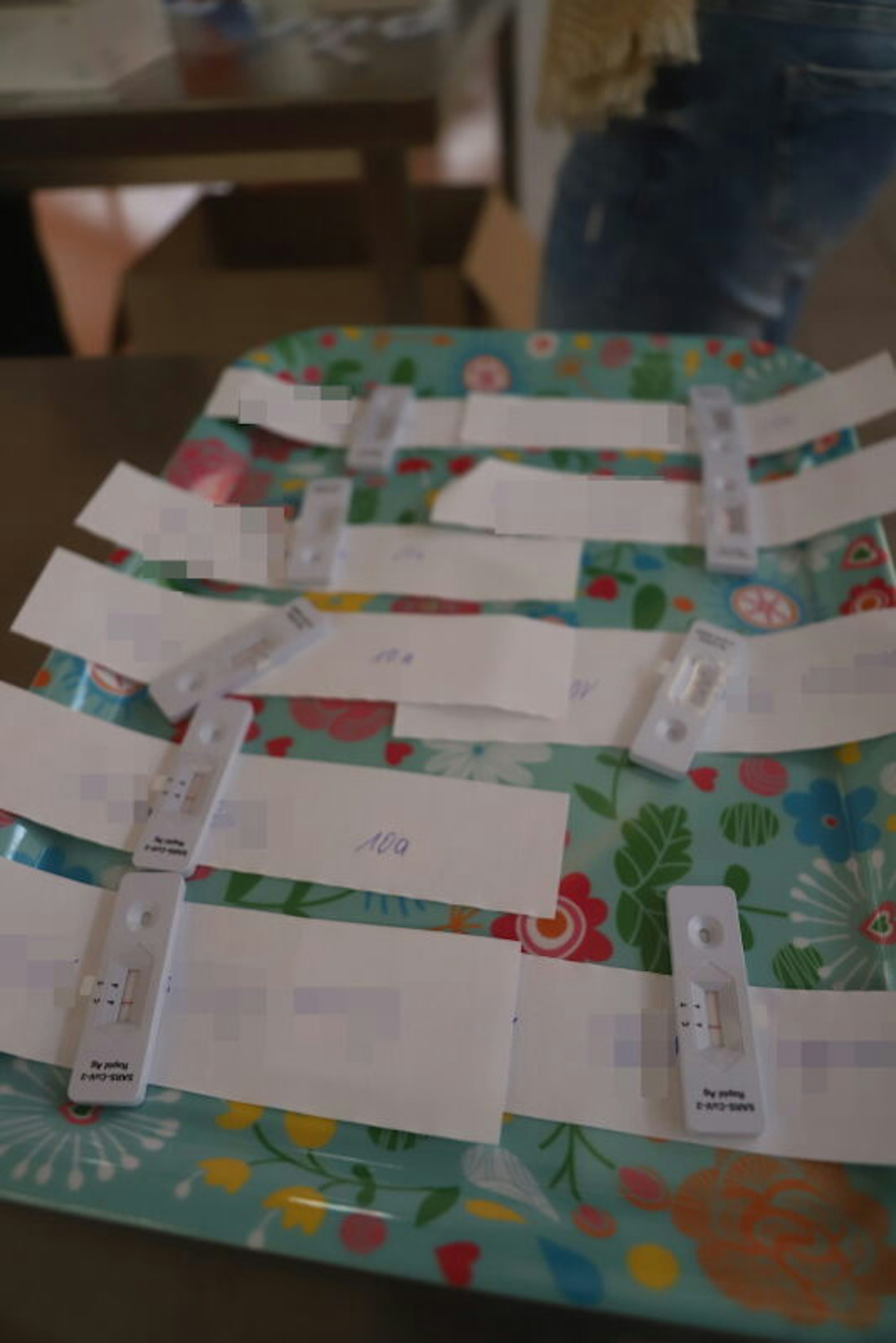 Warten auf das Ergebnis: die fertigen Tests auf einem Tablett.