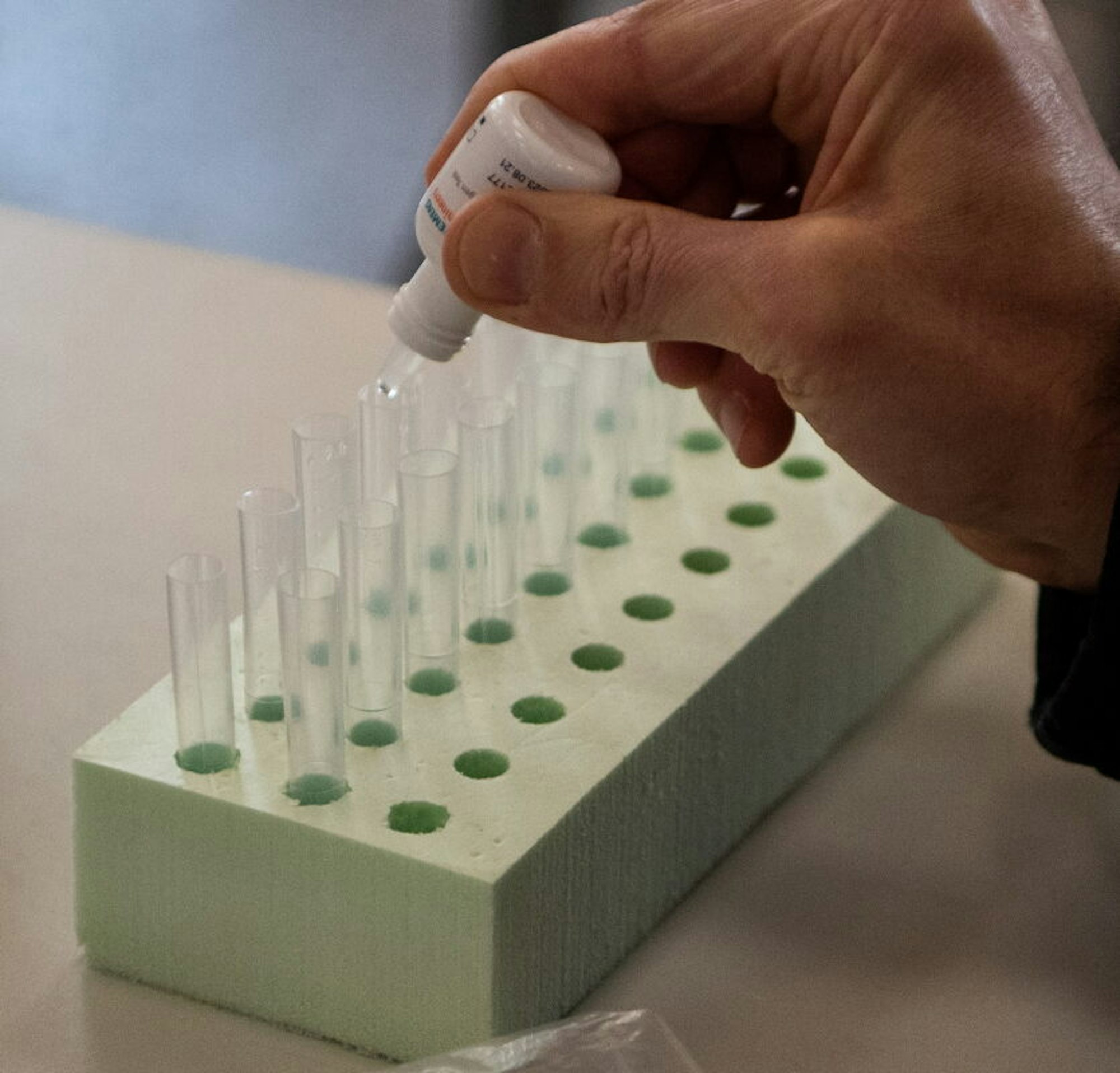 Aus größeren Ampullen muss die Testflüssigkeit umgefüllt werden.