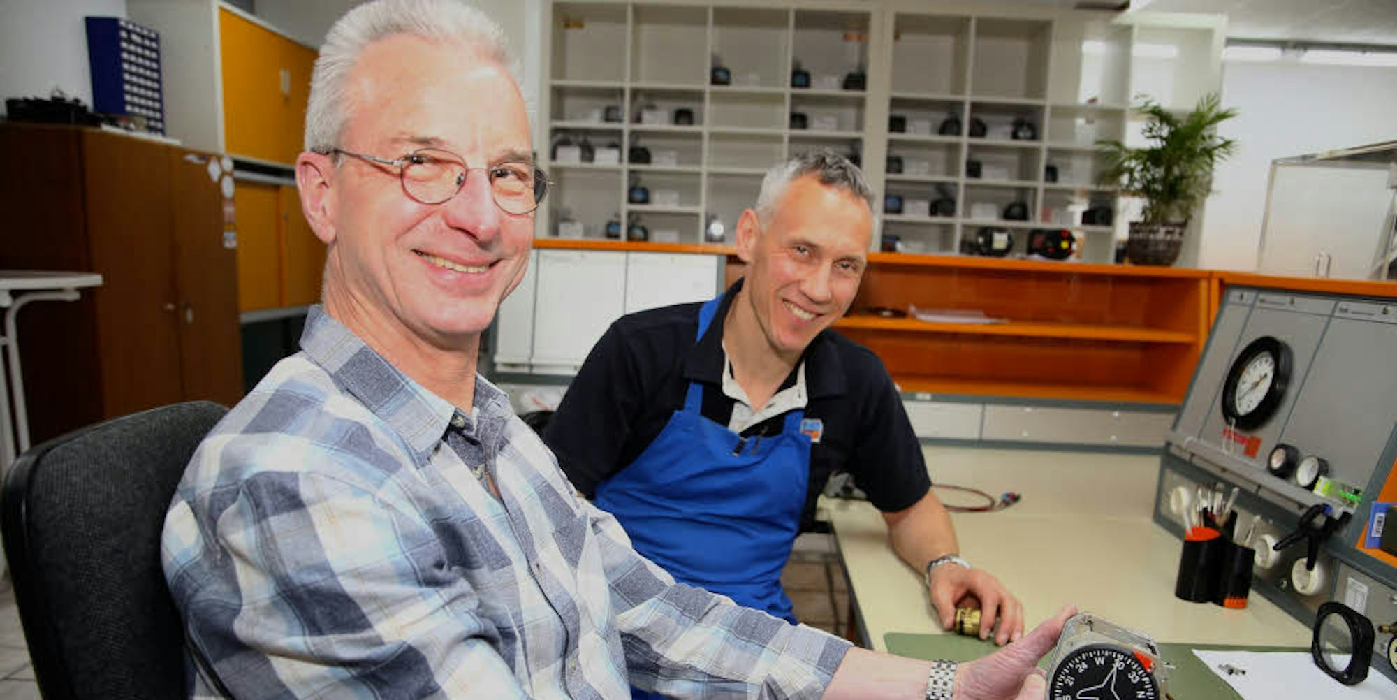 Dafür, dass die Instrumente an Sportflugzeugen funktionieren, sorgen Klaus-Dieter Dobrunz (l.) und Dietmar Maus.