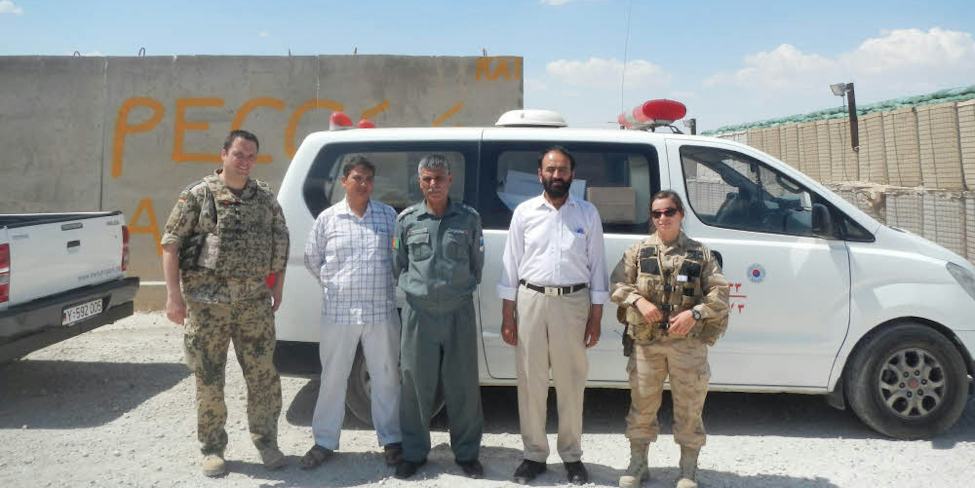 Die Erfahrungen aus seinen Einsätzen in Afghanistan, hier bei der Übergabe eines Fahrzeugs an einen afghanischen Polizeiarzt, lässt Thorsten Mette in seine Kurse einfließen.