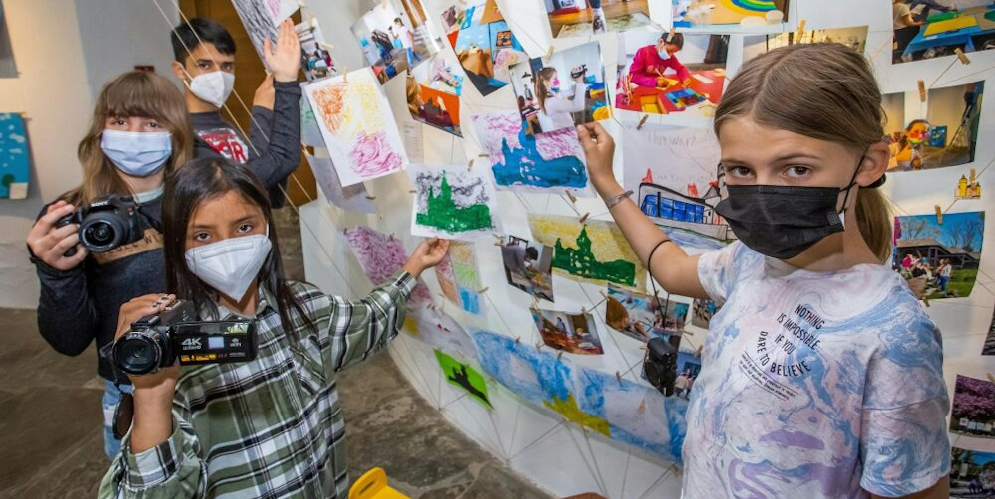 Am Dienstag erkundeten sie zunächst das Schloss – und das dann auch bald künstlerisch. Ausgerüstet mit Papier und Ölkreide erstellten die Kinder sogenannte Frottagen: So wurde das Papier etwa auf den alten Steinboden der Burgküche gelegt und die Strukturen wurden mit der Kreide auf das Blatt übertragen. Anschließend begannen die Kinder damit, ihre eigenen bunten Burg-Kunstwerke zu erstellen. Welche Menschen mit welcher Ausbildung es braucht, um ein Museum zu betreiben, war Thema am Mittwoch: Die Kinder erfuhren, dass es von der Sammlungskuratorin über den Restaurator bis hin zum Sicherheitspersonal ganz unterschiedliche Berufe gibt. Am Donnerstag überlegten sie, wie eine Ausstellung publik gemacht werden kann und erstellten ein Werbefoto. Am vorerst letzten Aktionstag am Freitag bereiteten sie ihre eigene große Schau im Raum neben der Burgküche vor.