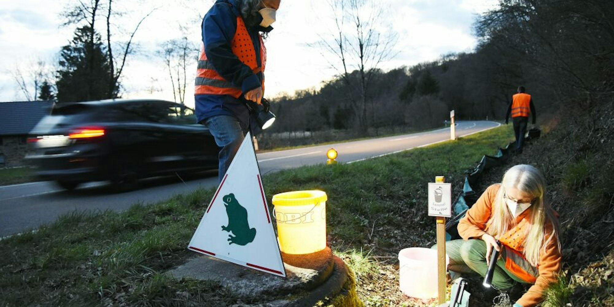 Seit 1967 findet sich die Gruppe Freiwilliger vor allem aus Reihen des Naturschutzbundes Nabu in Lindlar jedes Jahr, um Amphibien zu retten. Amphibienwacht nennen sie sich und suchen Helfer. Wer helfen will, kann sich unter