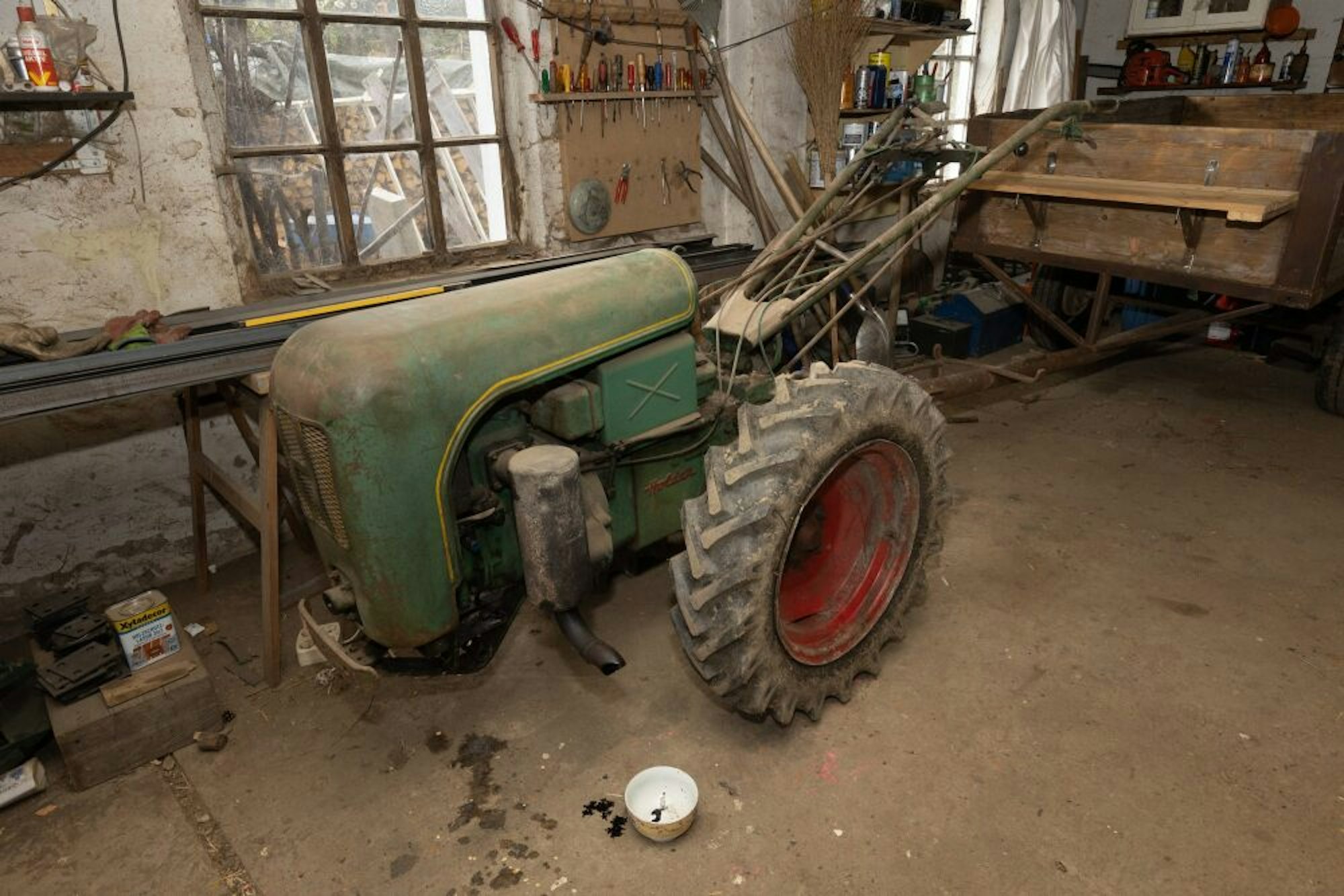Schon jetzt ist die Anlage ein Idyll und eine Insel der Ruhe. Jedenfalls, bis Georg Bee seinen 1-Achs-Traktor der Marke Holder aus den 1960er Jahren anschmeißt. Dann wird es schon mal lauter. Das Gerät, das Bee gebraucht in Morsbach gekauft hat, nutzt er zum Beispiel zum Pflügen des weniger abschüssigen Teils seines Gartens.