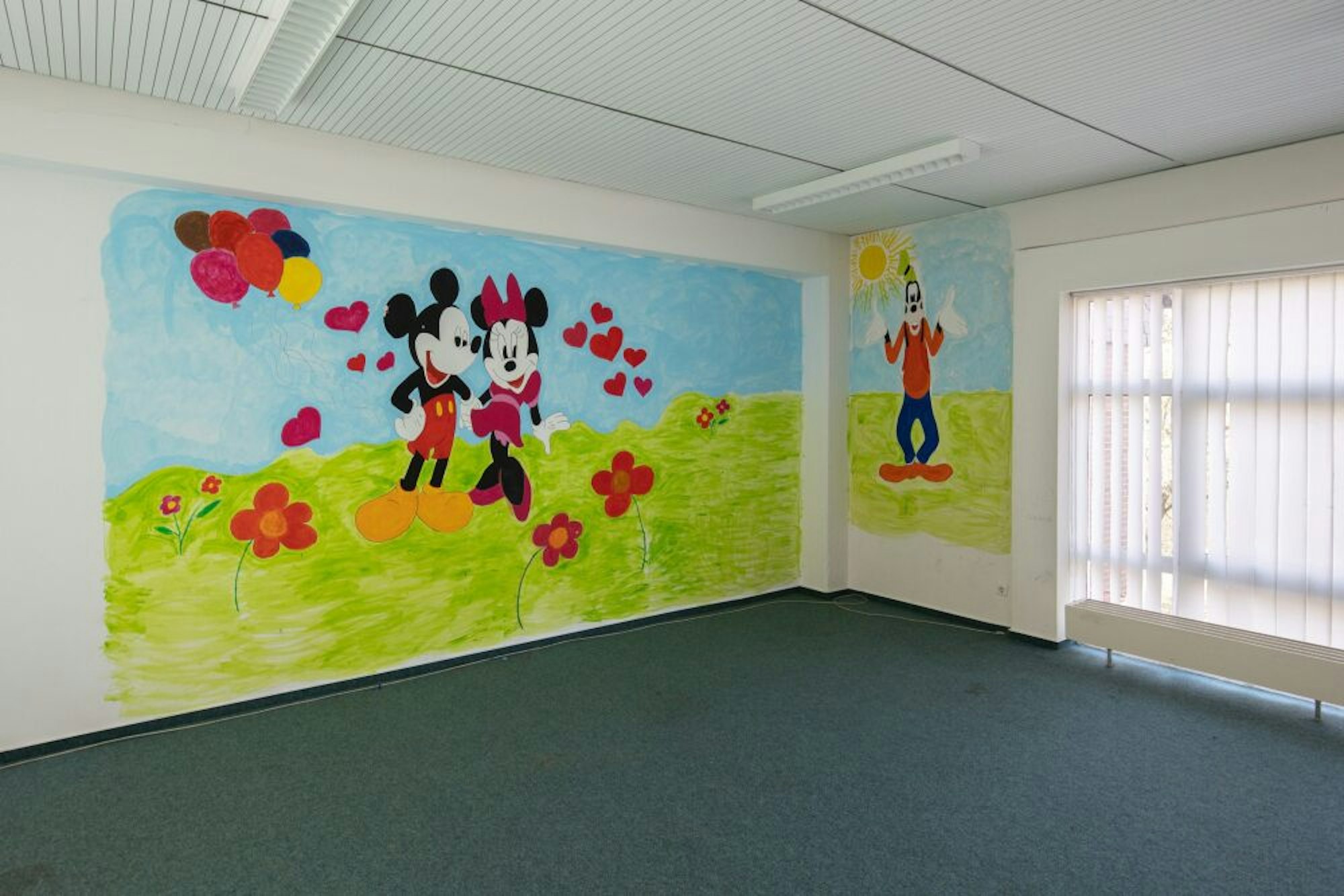 Das Foyer der Schule macht noch einen guten Eindruck: Die bunten Bilder, die die Schüler hier gemalt haben, erstrahlen noch immer in bunten Farben. Erst beim zweiten Blick erkennt man, dass hier inzwischen auch ungebetene Besucher ihr Unwesen getrieben haben. Beinahe alle Feuerlöscher, die sich noch in der Schule befanden, sind ohne Not geleert worden. Für diesen Vandalismus haben auch Baudezernent Jürgen Hefner und Fachbereichsleiter Arndt Reichold, die Kritzler auf der Runde begleiten, „kein Verständnis“. Inzwischen ist die Schule aber so gesichert, dass Einbrecher nicht mehr so leicht ins Gebäude kommen, wie Kritzler sagt. Und falls doch, dann erwarte sie drinnen eine Videoüberwachung.