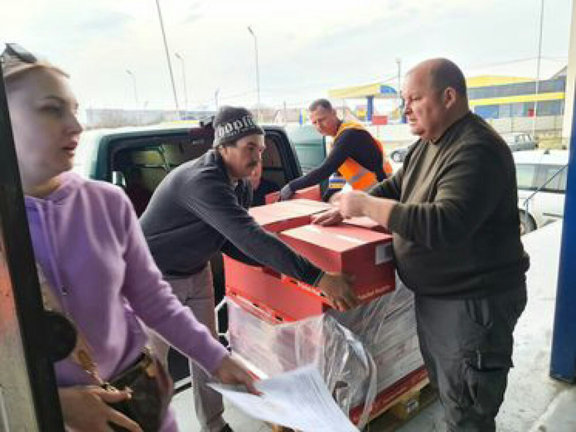 Im rumänischen Sighetu Marmației an der ukrainischen Grenze werden Hilfsgüter aus dem Bergischen in ukrainische Kleinlaster verladen.