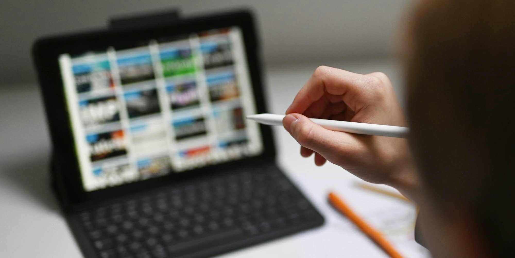 Ein Schüler arbeitet an einem iPad mit der Lernplattform Moodle.