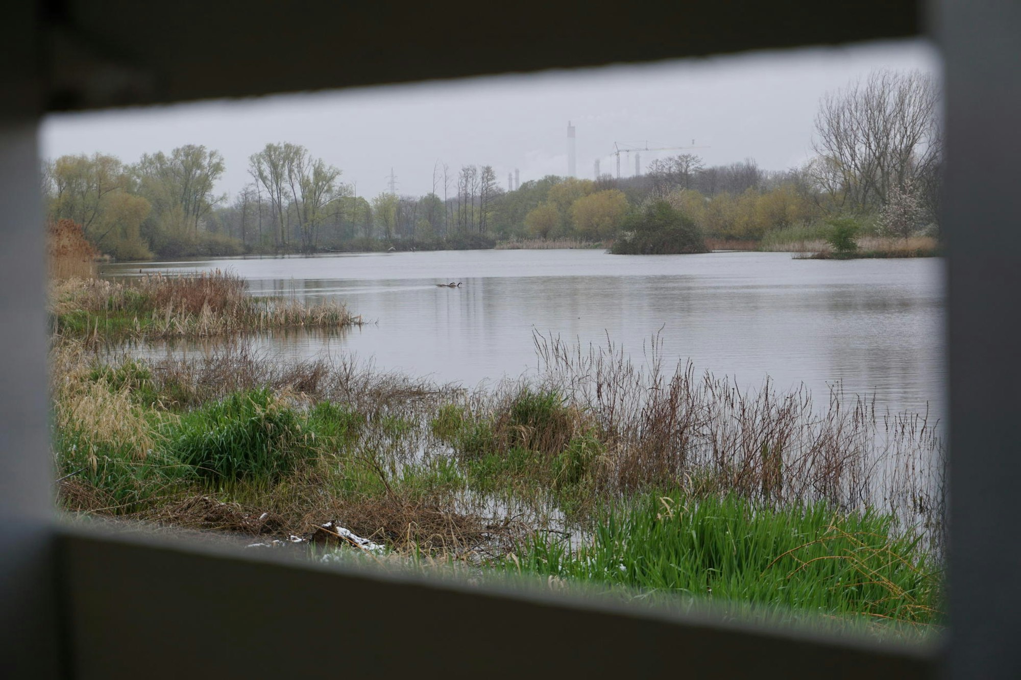 Wesseling – Still und ruhig liegt das Wasser des Entenfangs. Gelegentlich melden sich Vögel und schnatternde Wildgänse zu Wort und gleiten gemächlich über das Wasser.