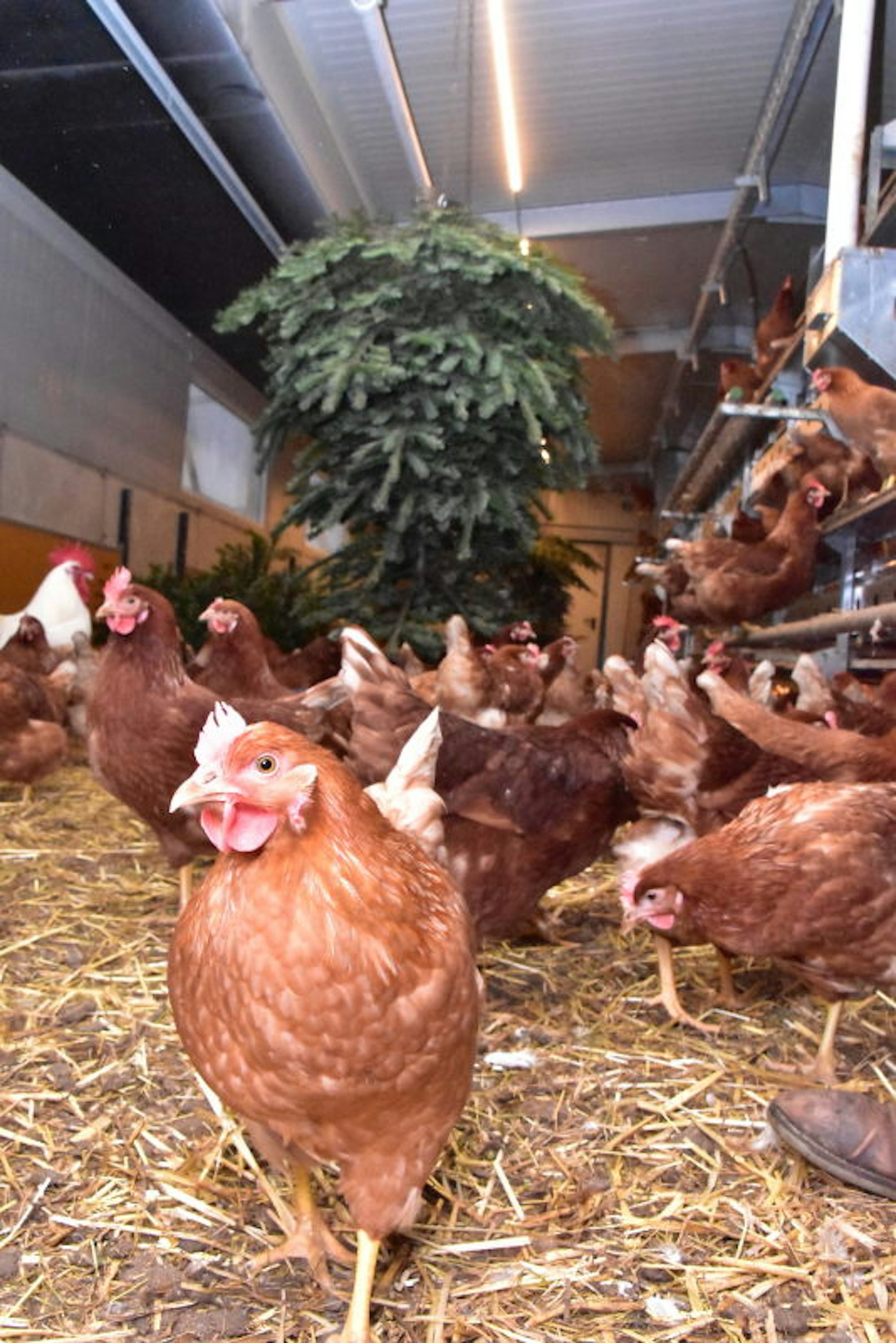 - Größter Fan der Tannen? Das sind die 1000 Legehennen, die auf dem Hof des Bauern leben.