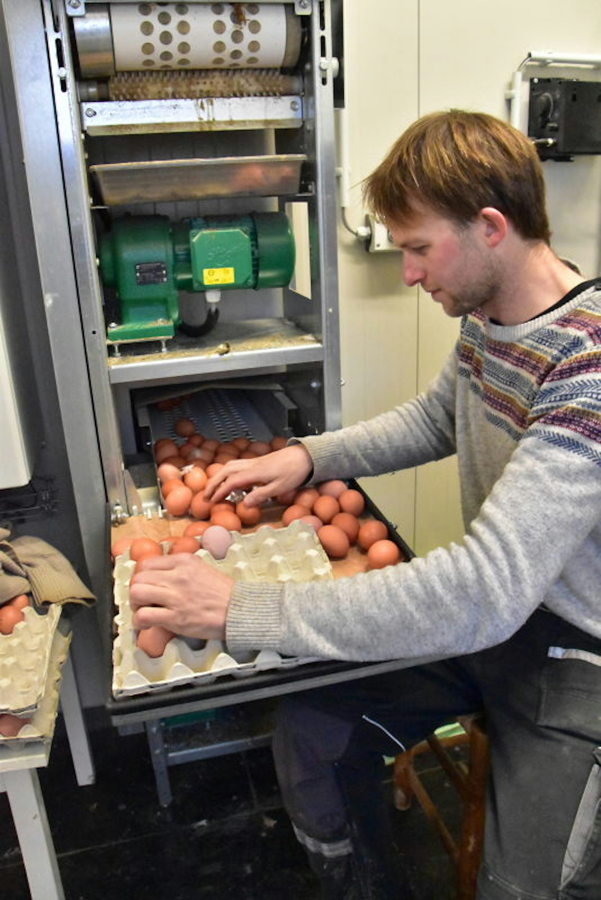 Etwa 1000 Eier müssen pro Tag sortiert werden.