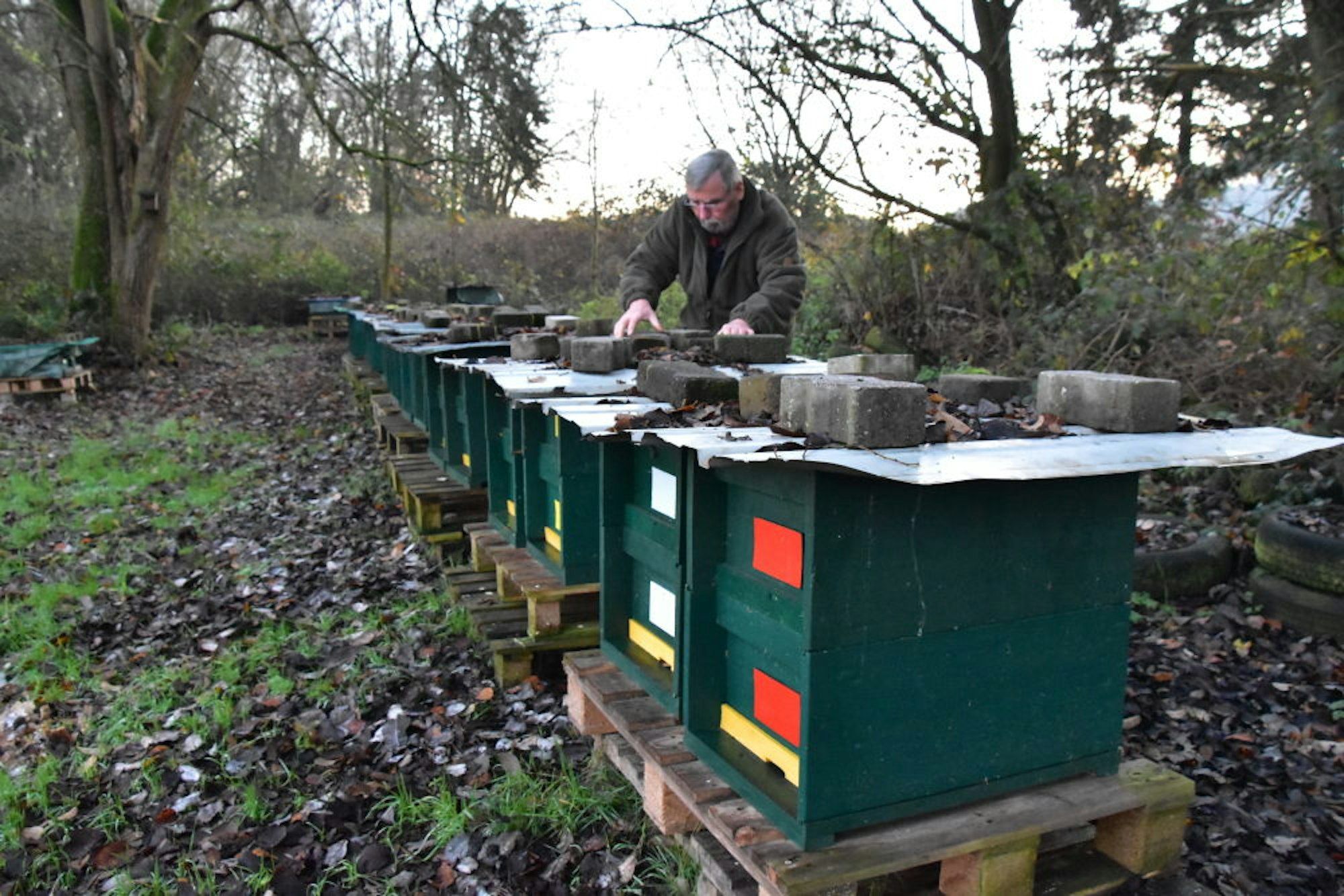 Beruflich war Erhard Bernhardt vor seinem Ruhestand Eisenbahner. 250 Auszubildende hat er zeitweise betreut. 40 Jahre hat er als Ausbildungsmeister mit Menschen zu tun gehabt. Die Liebe zum Handwerk ist bis heute geblieben. „Jet nit jibbet nit,“ sei stets seine Devise gewesen. „Es gibt immer eine Lösung“, übersetzt er frei und outet sich als Tüftler. Seine handwerklichen Fähigkeiten waren Bernhardt auch bei der Imkerei hilfreich. Bis heute repariert und baut er die Kästen selbst, in denen die Völker wohnen. „Noch genau so, wie mein Vater“, berichtet er. Ein Teil der Kästen, in denen die Bienen derzeit überwintern, stamme sogar noch vom Vater.