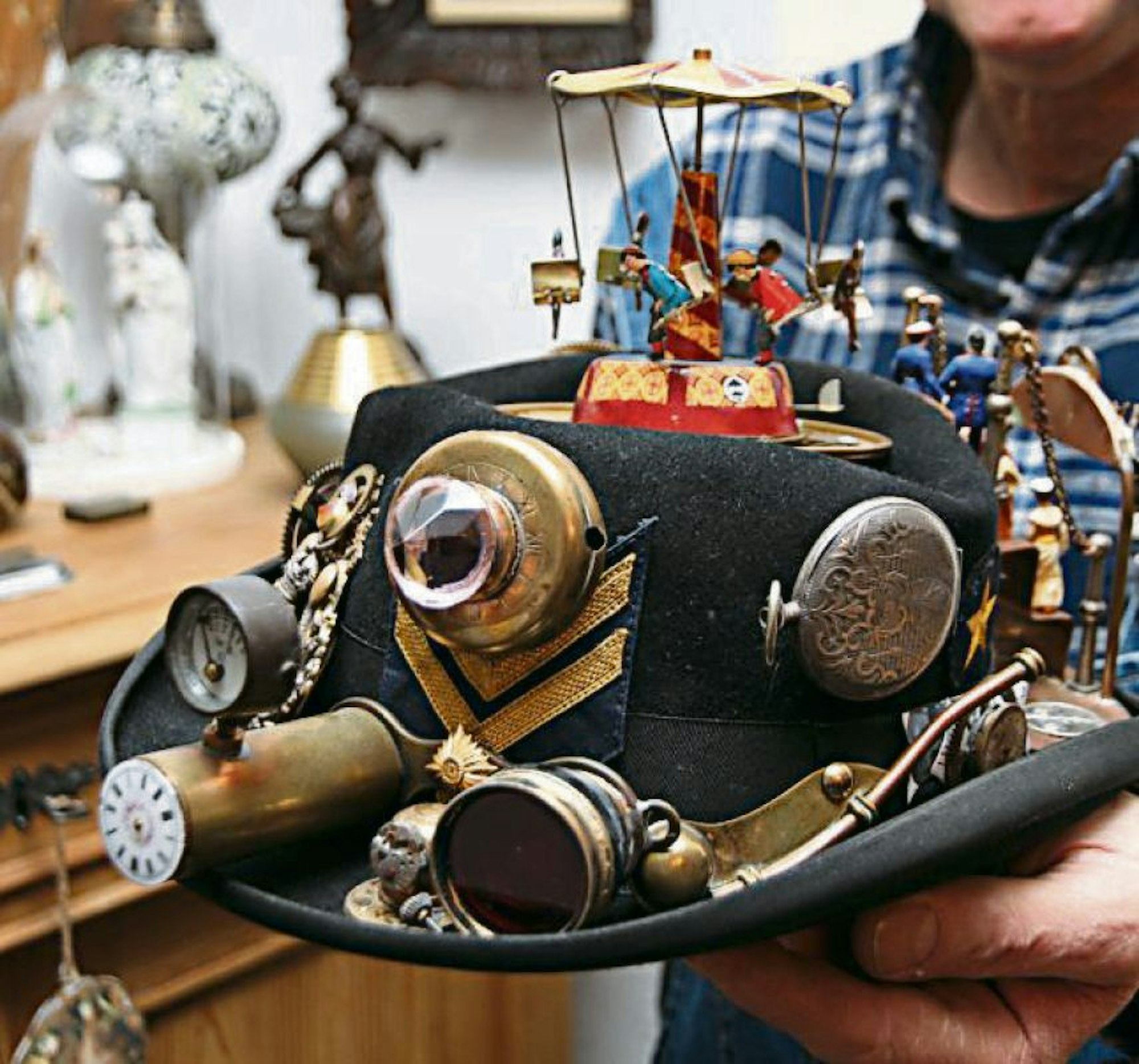Was es genau es mit der Retro-Mode auf sich hat, darüber gibt es dem 59-Jährigen zufolge mindestens fünf Auffassungen. „1840 bis 1925, in dieser Zeit bewegt man sich etwa“, schildert er, und vor allem mache man das gemeinsam mit Gleichgesinnten. Er selbst und eine Gruppe von Freunden kamen vor rund zehn Jahren auf die Idee, sich dem „Steampunk“ zu widmen und in nostalgischen Outfits an Karnevalszügen teilzunehmen. Zuvor hatte er sich in der Mittelalterszene umgetan, aber festgestellt, dass es dort mitunter bierernst zuging . „Da wurde ich einmal gefragt, ob ich auch eine handgenähte Unterhose trage.“