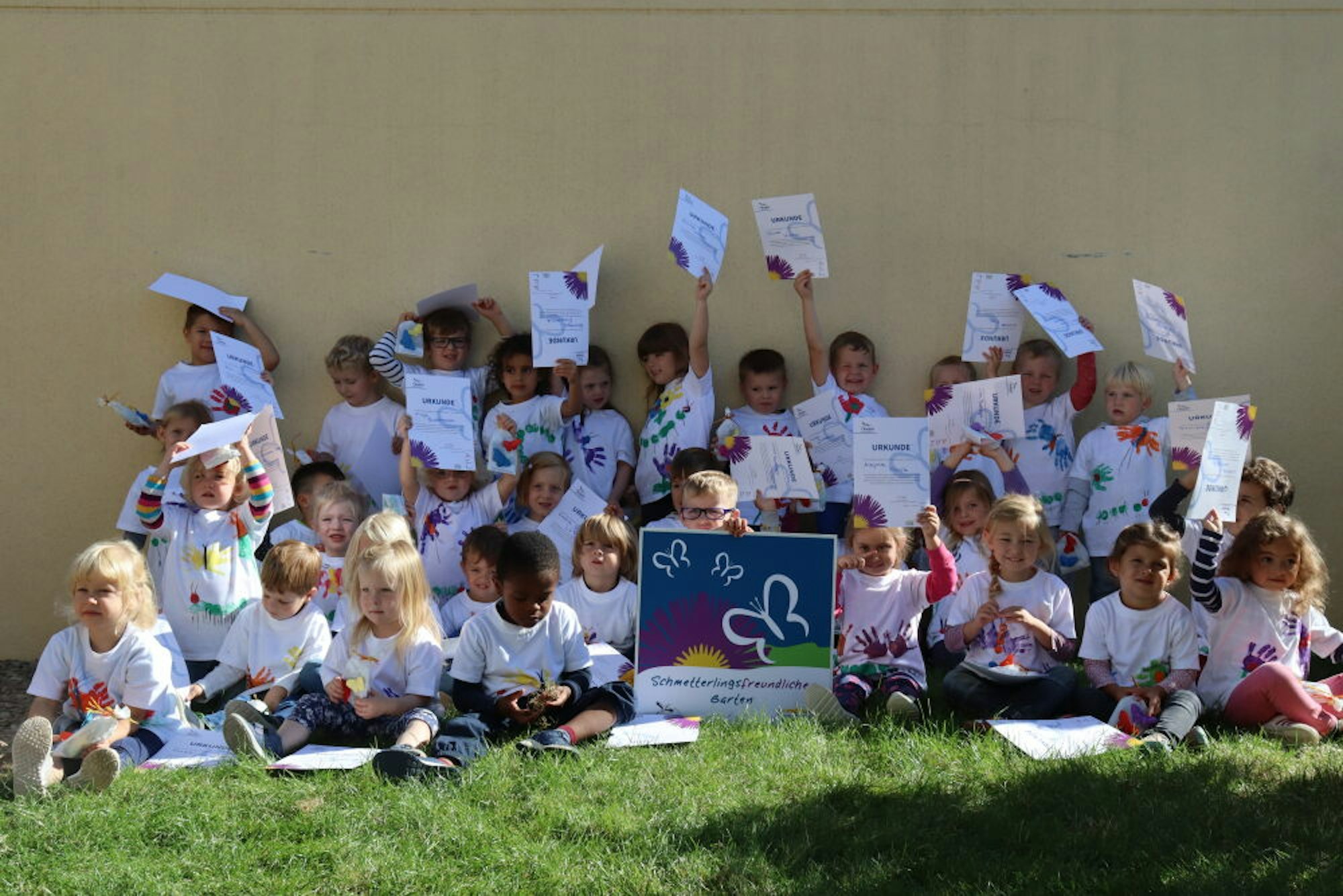 Jedes Kind bekam eine Urkunde als Anerkennung für seine Mitwirkung im Schmetterlingsprojekt.