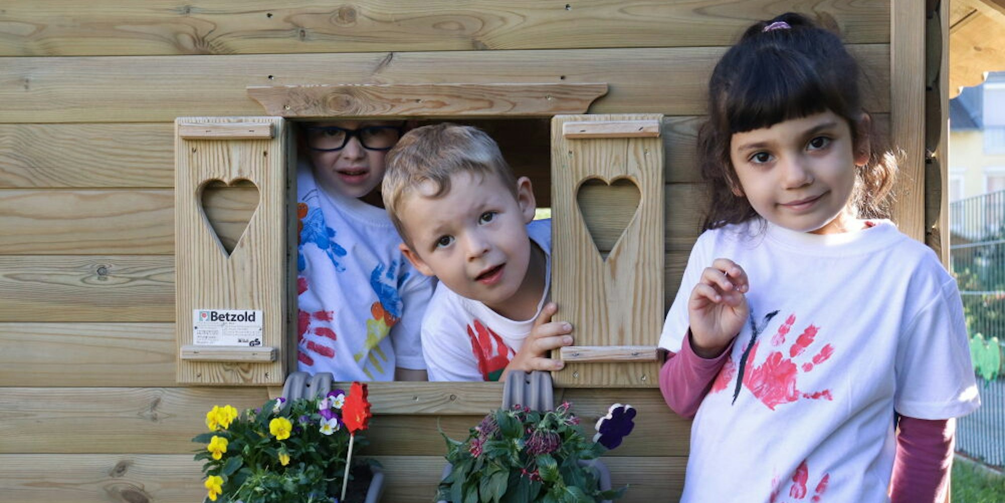Mit ihren Handabdrücken hatten die Kinder Schmetterlinge auf ihre T-Shirts gezaubert.