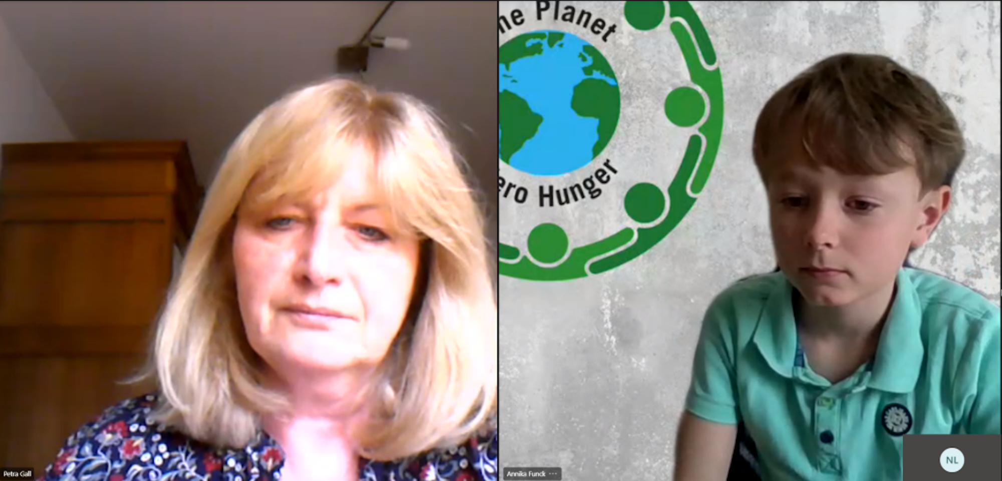 Petra Gall und Matthis in ihrer wöchentlichen Videokonferenz.