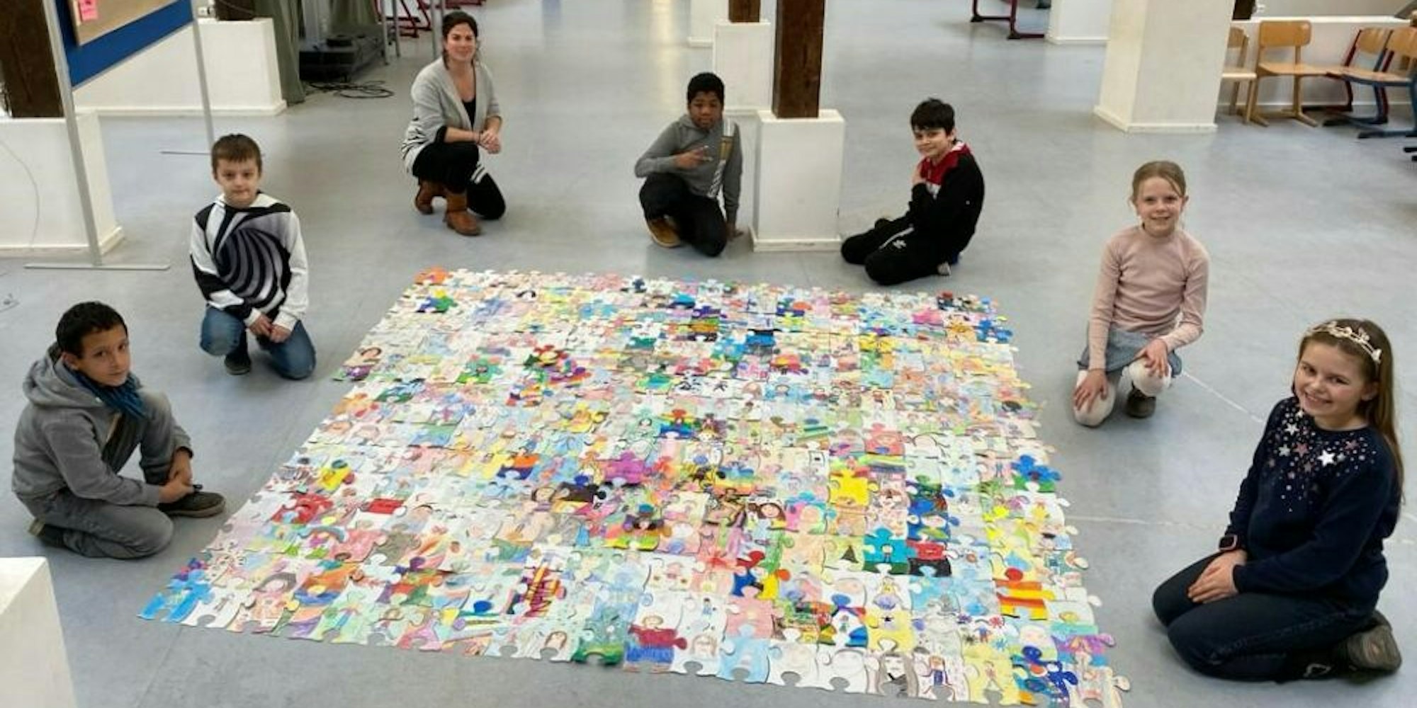Köln – Ein Puzzle besteht aus vielen kleinen Einzelteilen, die zusammen ein Ganzes ergeben. Das Symbol hat Sabrina Esser, Sozialarbeiterin an der Grundschule Horststraße in Mülheim, bewusst für ihre Mitmach-Aktion gewählt. „Wir können gerade nicht zusammen sein, aber wir gehören zusammen“, erklärt sie den Schülern, die zurzeit größtenteils von Zuhause am Unterricht teilnehmen und nur einmal in der Woche ihre Lernpakete an der Schule abholen.