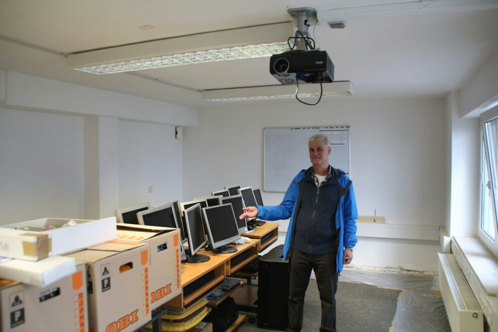Die Computer haben das Wasser überlebt, wie Joachim Debschütz sagt. Die Tische müssen aber ersetzt werden.