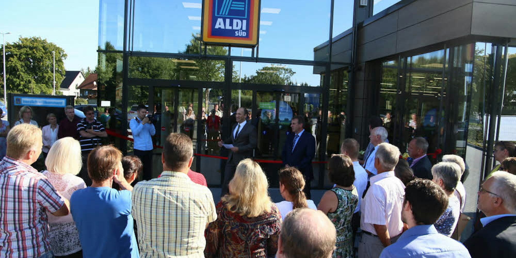 Stolz präsentierte er das neue Gebäude mit der Holzfassade, die, wie er erläuterte, ein Wunsch der Gemeinde gewesen sei. „Als Kaufmann muss ich sagen, das war extrem teuer“, gab er zu. In diesem Stil sollten die zukünftigen Aldi-Filialen errichtet werden – „vielleicht ein wenig kostengünstiger“, schränkte er verschmitzt lächelnd ein.