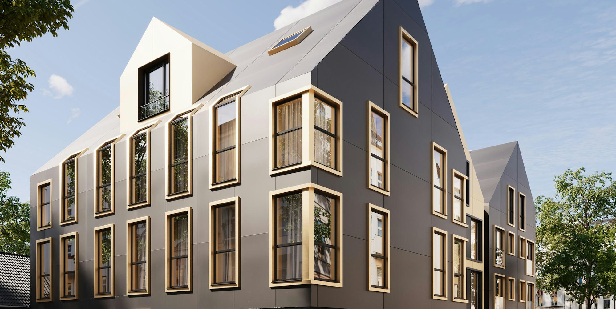 Der Neubau nimmt die giebelständige Architektur mit Satteldach aus dem Ortskern von Alt-Hürth auf.