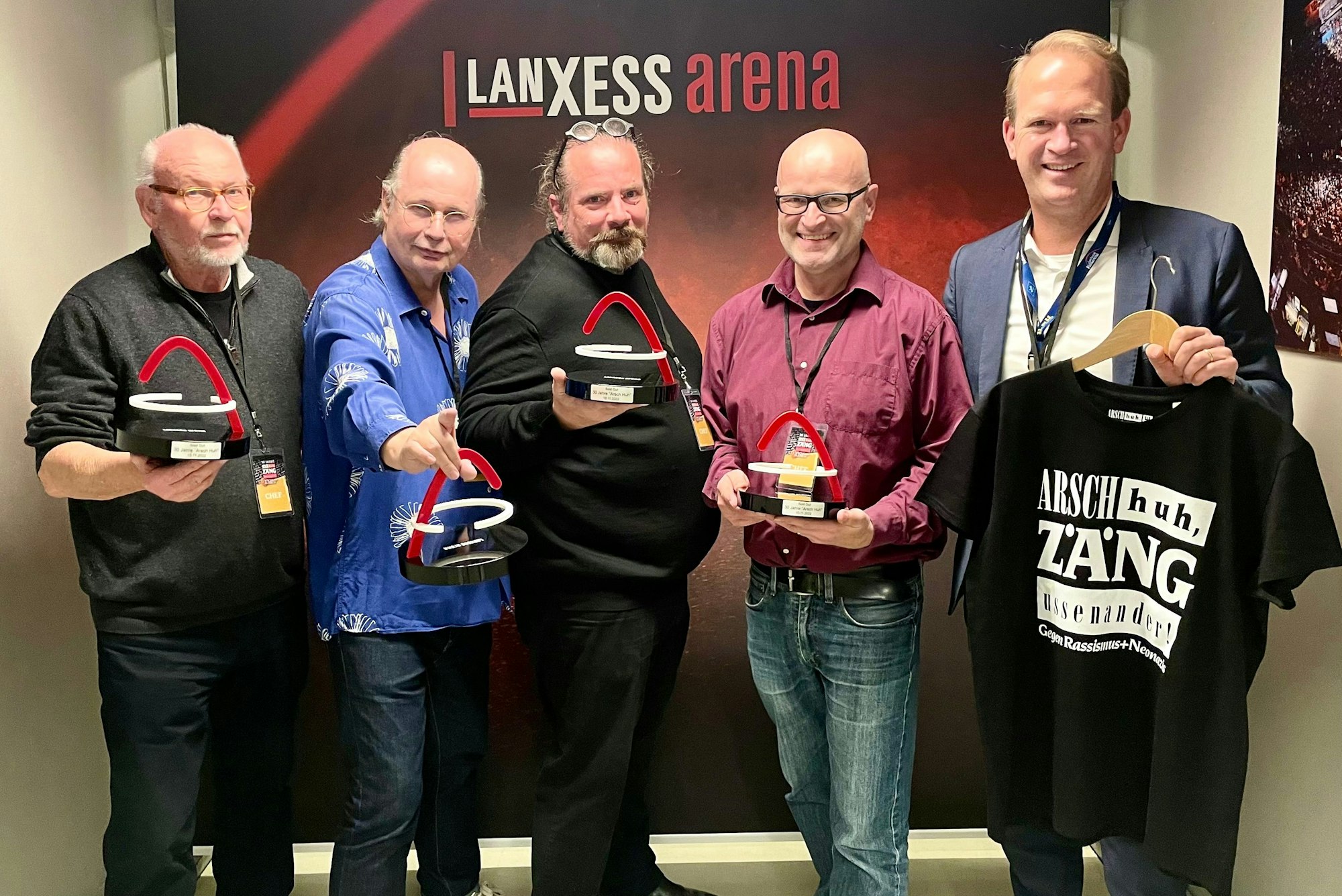 Arena-Geschäftsführer Stefan Löcher überreichte daher den Veranstaltern und Organisatoren im Vorfeld der Kundgebung den symbolischen Sold-Out-Award der Lanxess-Arena. Er lobte die Veranstaltung und war sichtlich stolz, dieser wichtigen Initiative so kurzfristig ein Zuhause bieten zu können: „Die AG Arsch Huh setzt seit 30 Jahren ein wichtiges Zeichen, dessen Strahlkraft weit über die Stadtgrenzen hinaus geht. Dass wir heute eine prall gefüllte Arena sehen, zeigt, dass wir alle zusammenstehen und uns entschieden gegen Rassismus positionieren. Mein Dank gilt den Organisatoren und all denen, die dieses tolle Ereignis am heutigen Abend ermöglicht haben.“