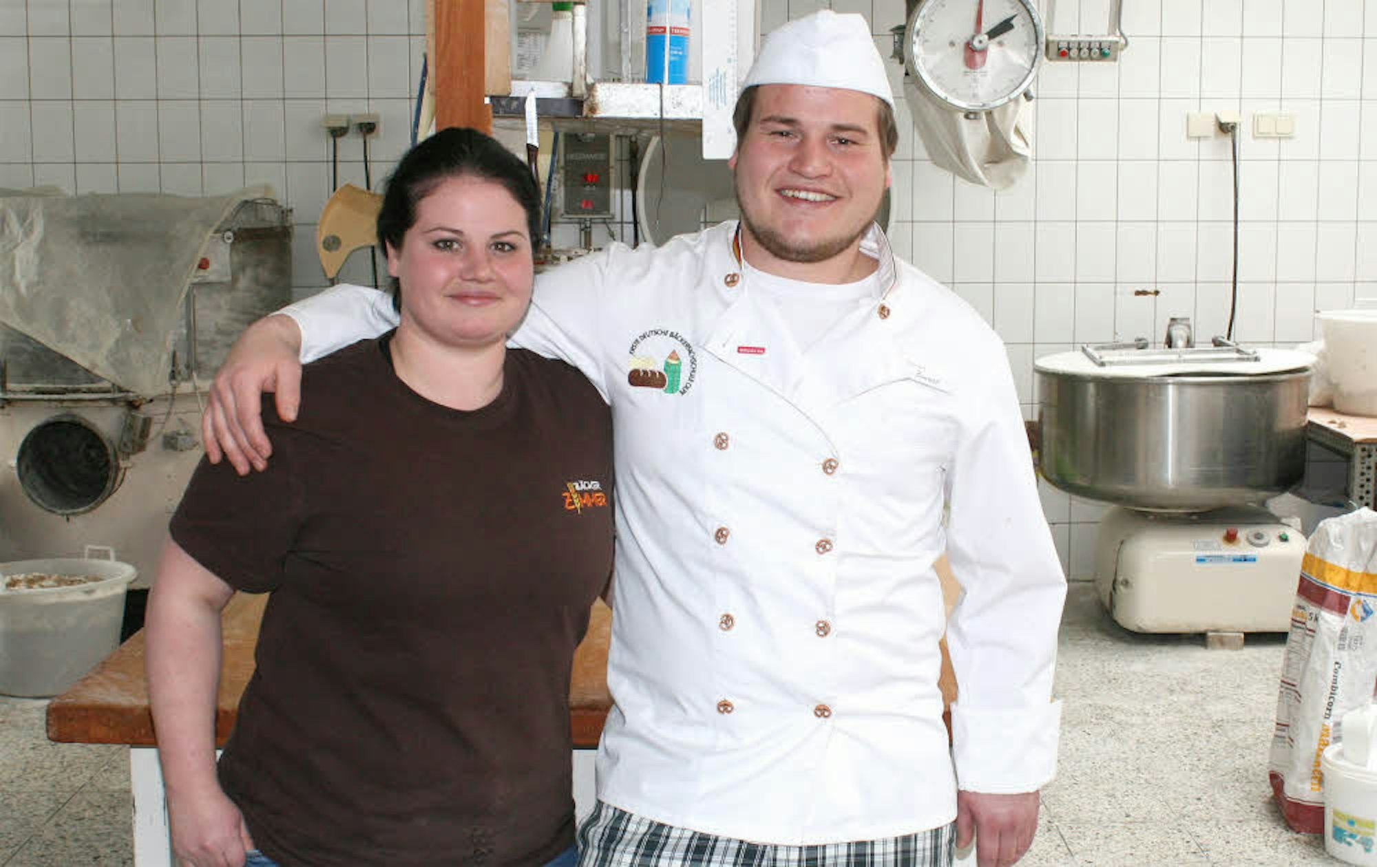 Karen und Patrick Zimmer, 27 und 29 Jahre alt, strahlen um die Wette. Die Verkaufsleiterin im Bäckerhandwerk und der gelernte Bäckermeister stehen in der Backstube der in Sistig 1949 gegründeten heutigen Bäckerei Zimmer und wissen: Wir sind die vierte Generation! 1949 hatte Max Kopischke in Sistig die erste Dorfbäckerei gegründet, Kurt Zimmer, sein Schwiegersohn, folgte ihm 1961, dessen Sohn Siegwin Zimmer wiederum 1990. Und jetzt Siegwins Kinder: Die Betriebsnachfolge ist gesichert. Die Bäckerei Zimmer GbR wird vier Geschäftsführer haben: Die Eltern und ihre beiden Kinder.