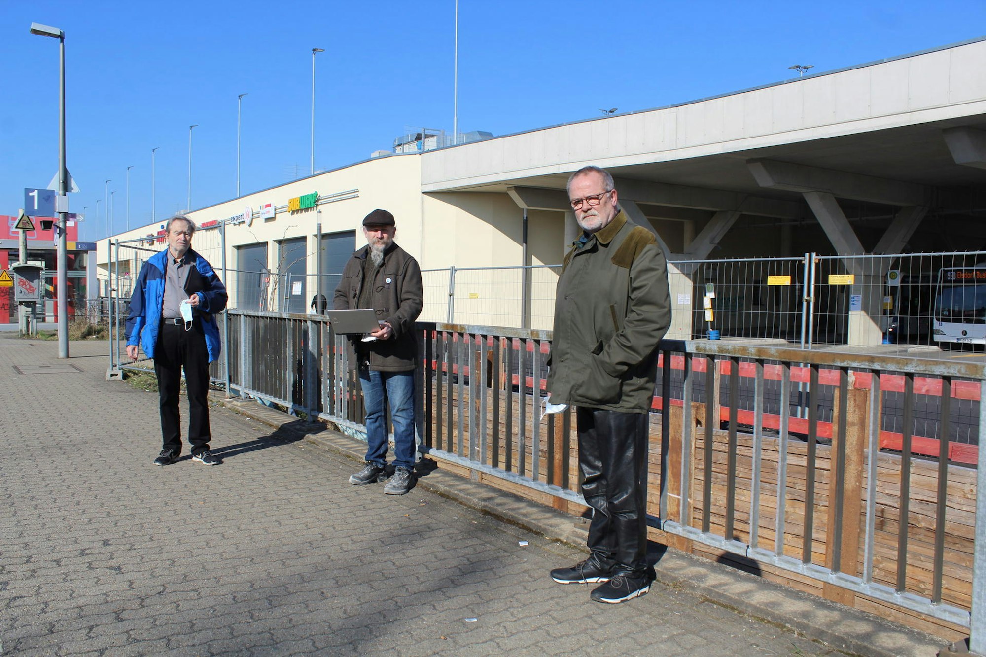 Wolfram Franke (v.l.), Peter Hirseler und Thomas Roos kritisieren die Planungen der Verwaltung für den Bergheimer Bahnhof.