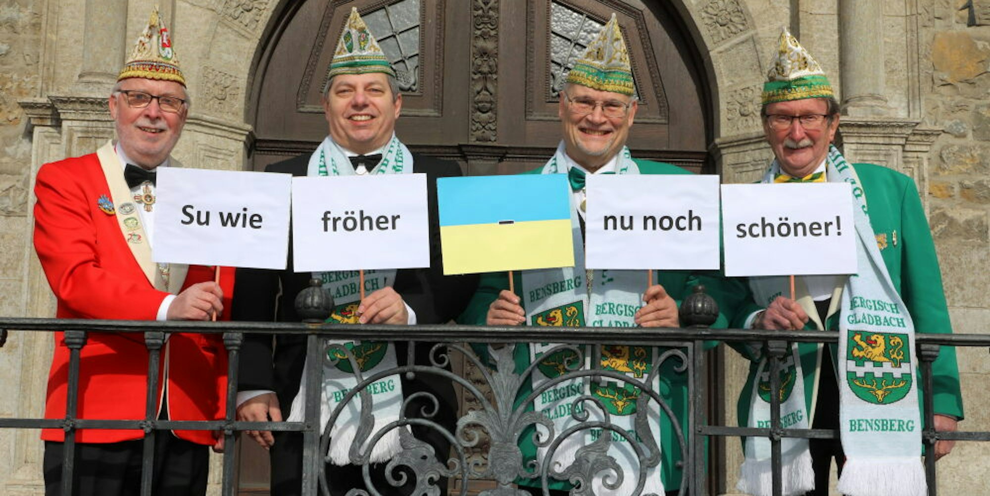 „So wie früher – nun noch schöner!“ Das neue Motto für die nächste Session präsentierten Vertreter von Brauchtumsvereinigung und Festkomitee Bensberger Karneval, (v.l.) Gisbert Schweizer, Frank Reiländer, Martin Gerstlauer und Helmut Kraus.
