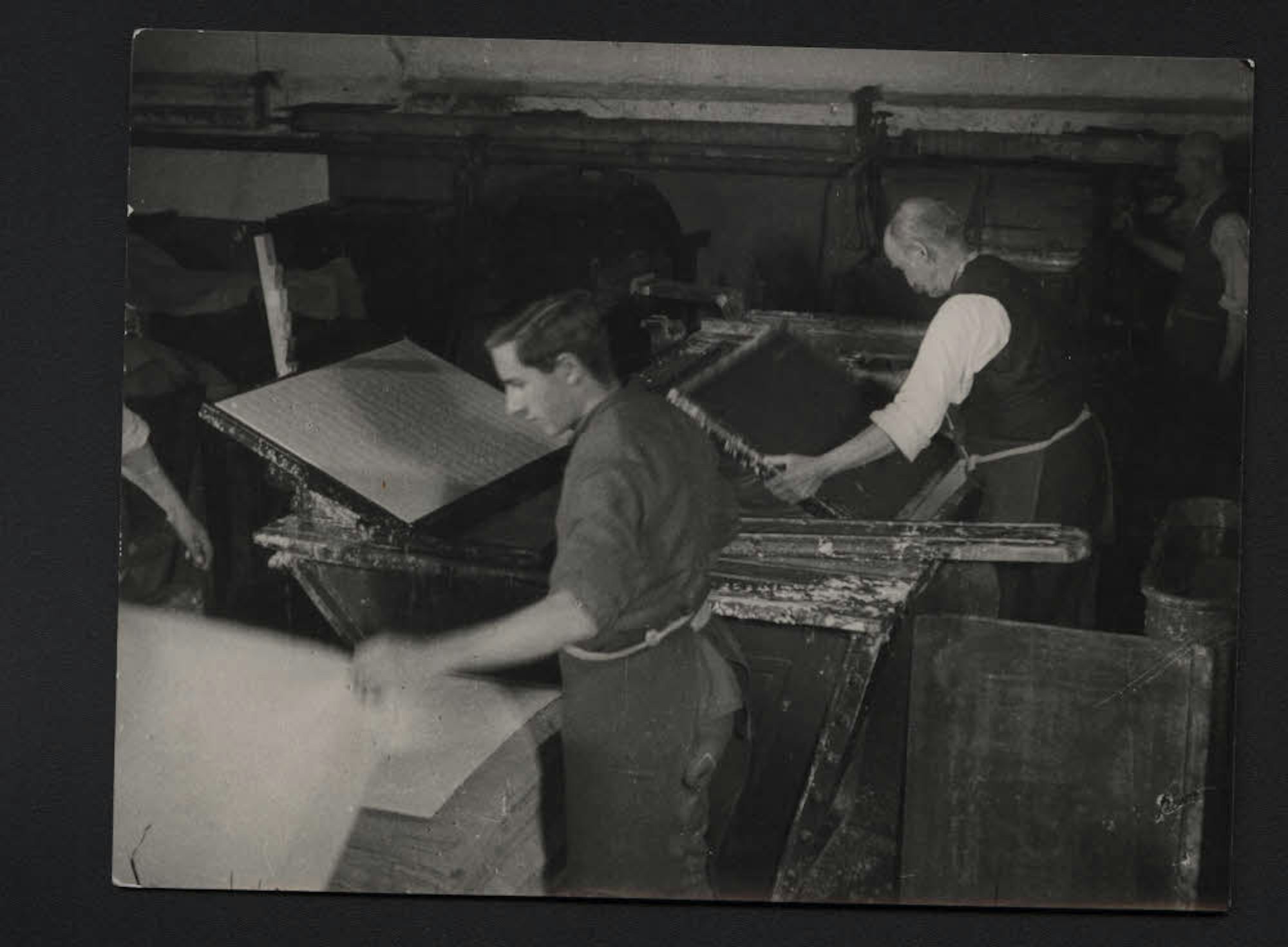 Papierschöpfer bei der Arbeit: Lange waren handgeschöpfte Bögen die Spezialität von Zanders, auch nach Einführung der Maschinen.