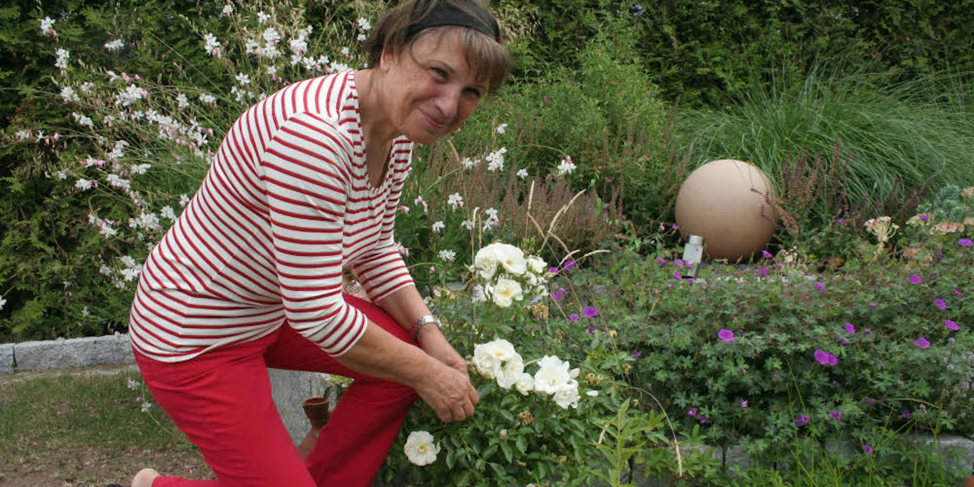 Die frühere Bürgermeisterin Maria Pfordt kann sich wenige Monate nach ihrer OP wieder der Gartenarbeit widmen.