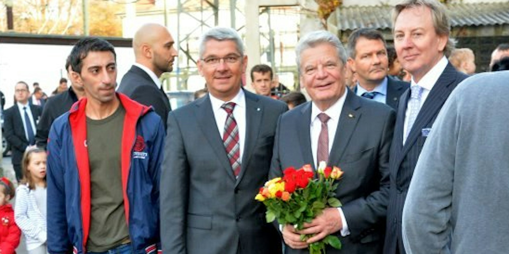 Von einem Flüchtling hatte Bundespräsident Joachim Gauck Blumen bekommen.
