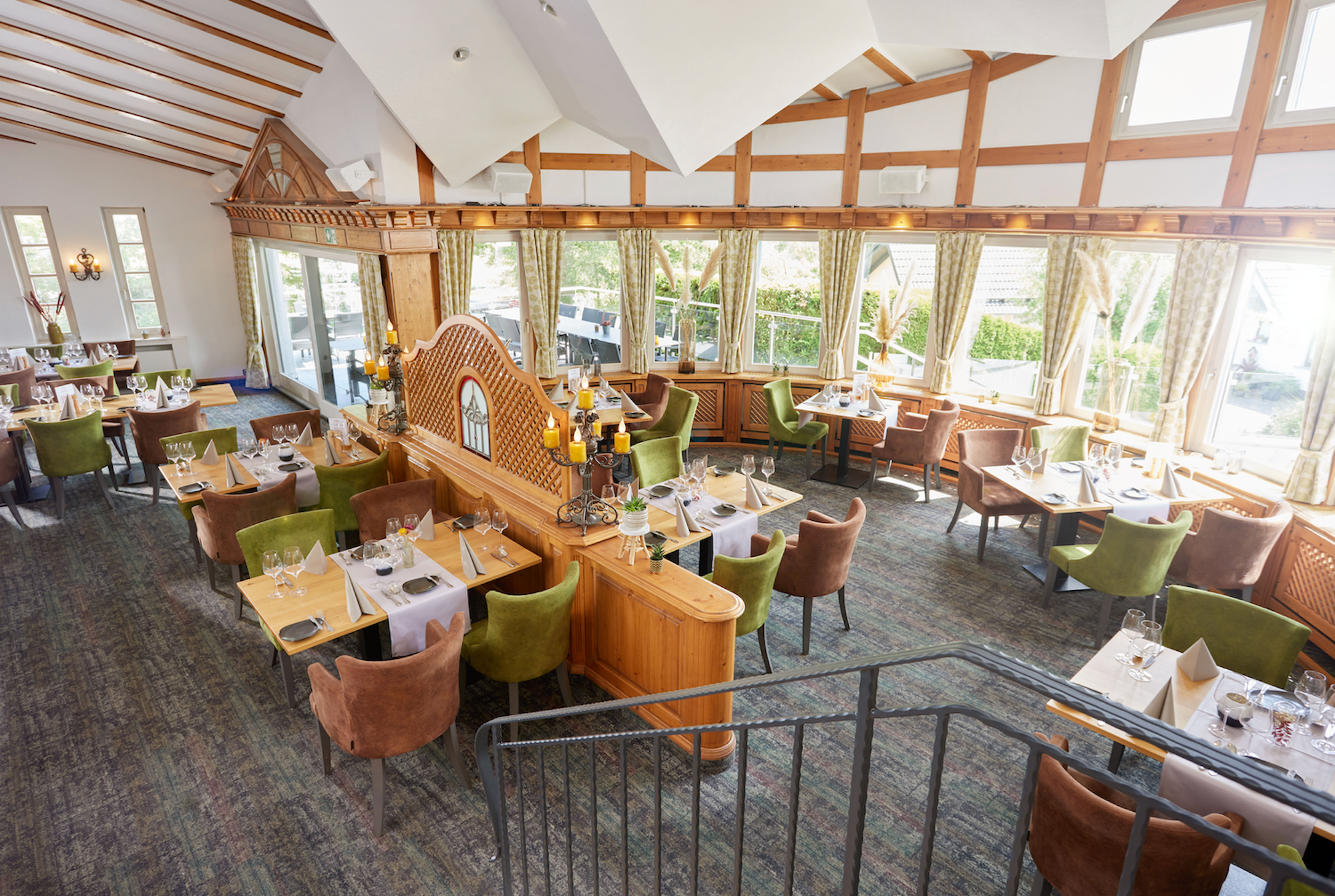 Auch der Restaurantbereich überzeugt durch seine moderne und zugleich gemütliche Holz-Optik.