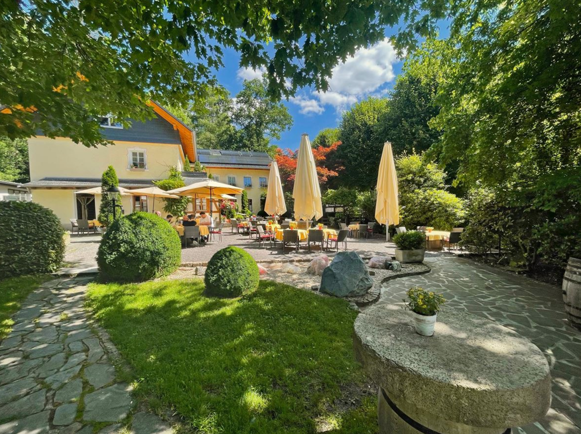 Der Biergarten des Restaurant Neuemühle ist bei den Gästen sehr beliebt.