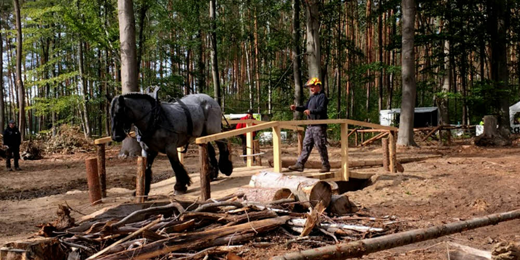 Also stand Intensivtraining auf dem heimischen Hof kurz vor Udenbreth auf dem Programm. Lebensgefährtin Julia Zenner, selbst im Holzrücksport mit ihrem Pferd aktiv, fungierte dabei als Coach und achtete auf die korrekte Ausführung der zu erwartenden Aufgaben.