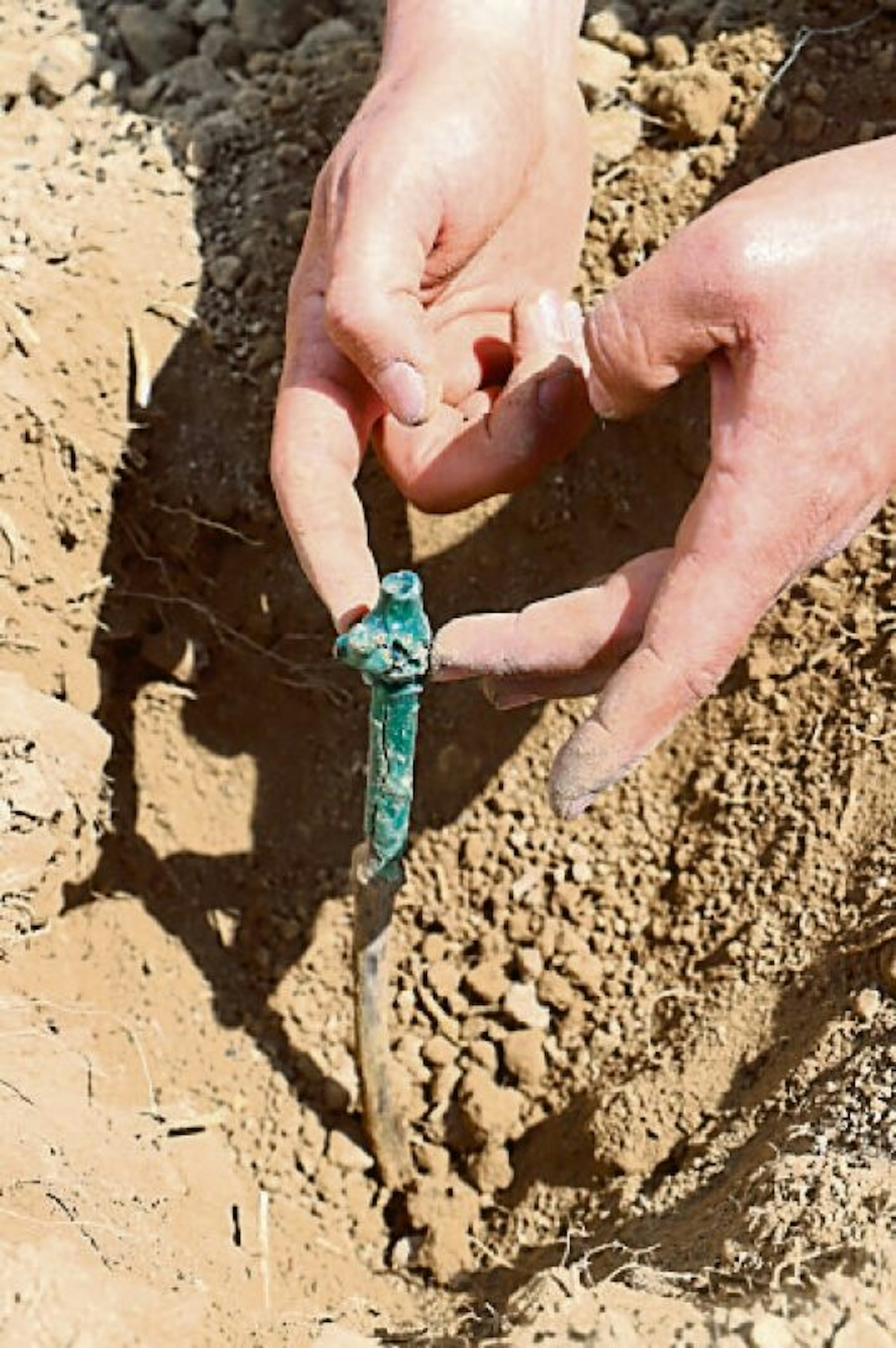 Die junge Weinpflanze im Boden ist reblausresistent.