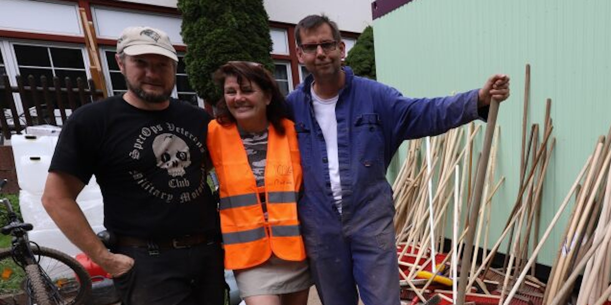 Auch Werkzeuge für die Helfer halten die Koordinatoren Steffen Palmroth, Andrea und Jan Coober bereit.
