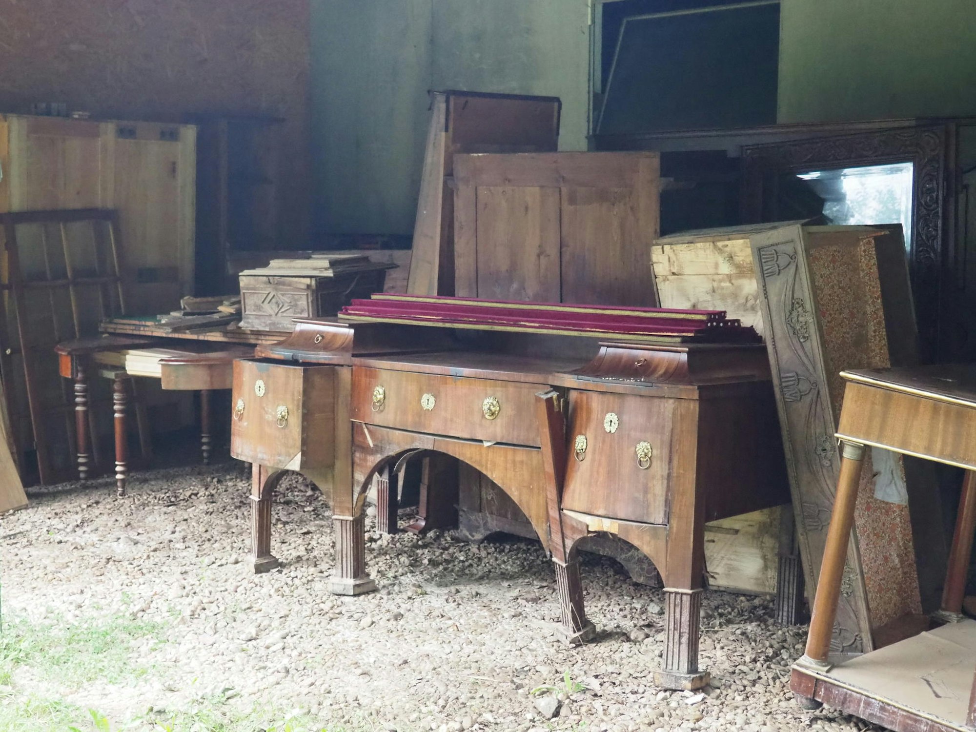 Viele alte, zum Teil wertvolle Möbelstücke stehen zum Trocknen in einem Schuppen. Was davon zu retten ist, weiß noch niemand.