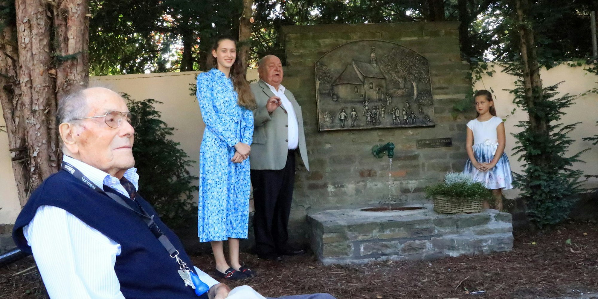 Zusammen mit Louisa und Valentina Baumann – den Urenkeln von Karl Baumann, der in der vergangenen Woche seinen 99. Geburtstag feierte – enthüllte Hans-Willi Meier das Kunstwerk, das abends sogar angestrahlt wird.