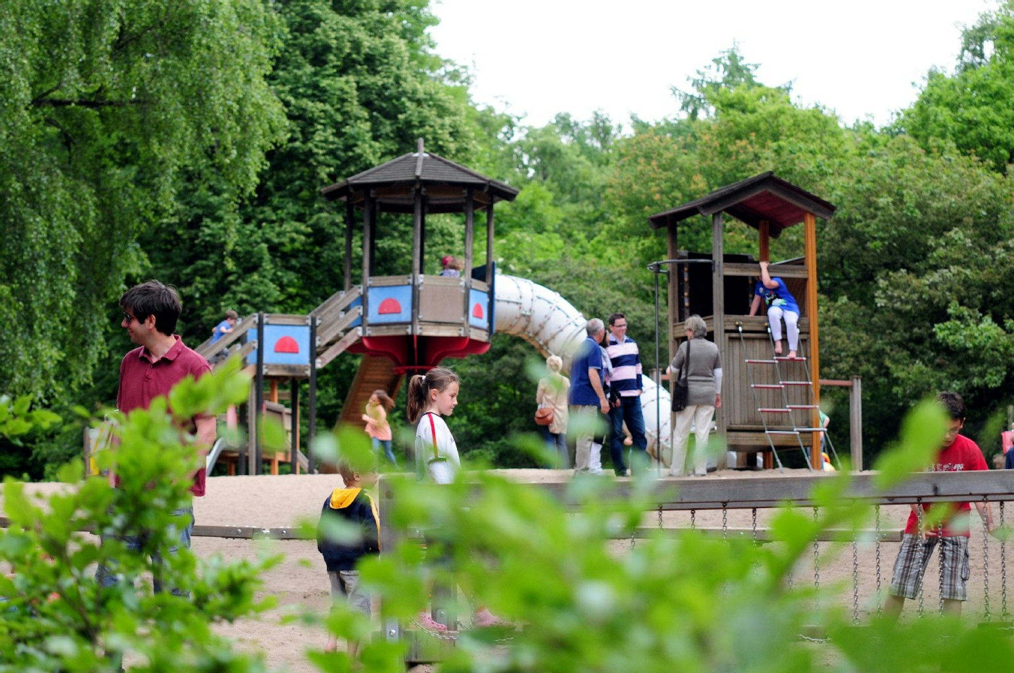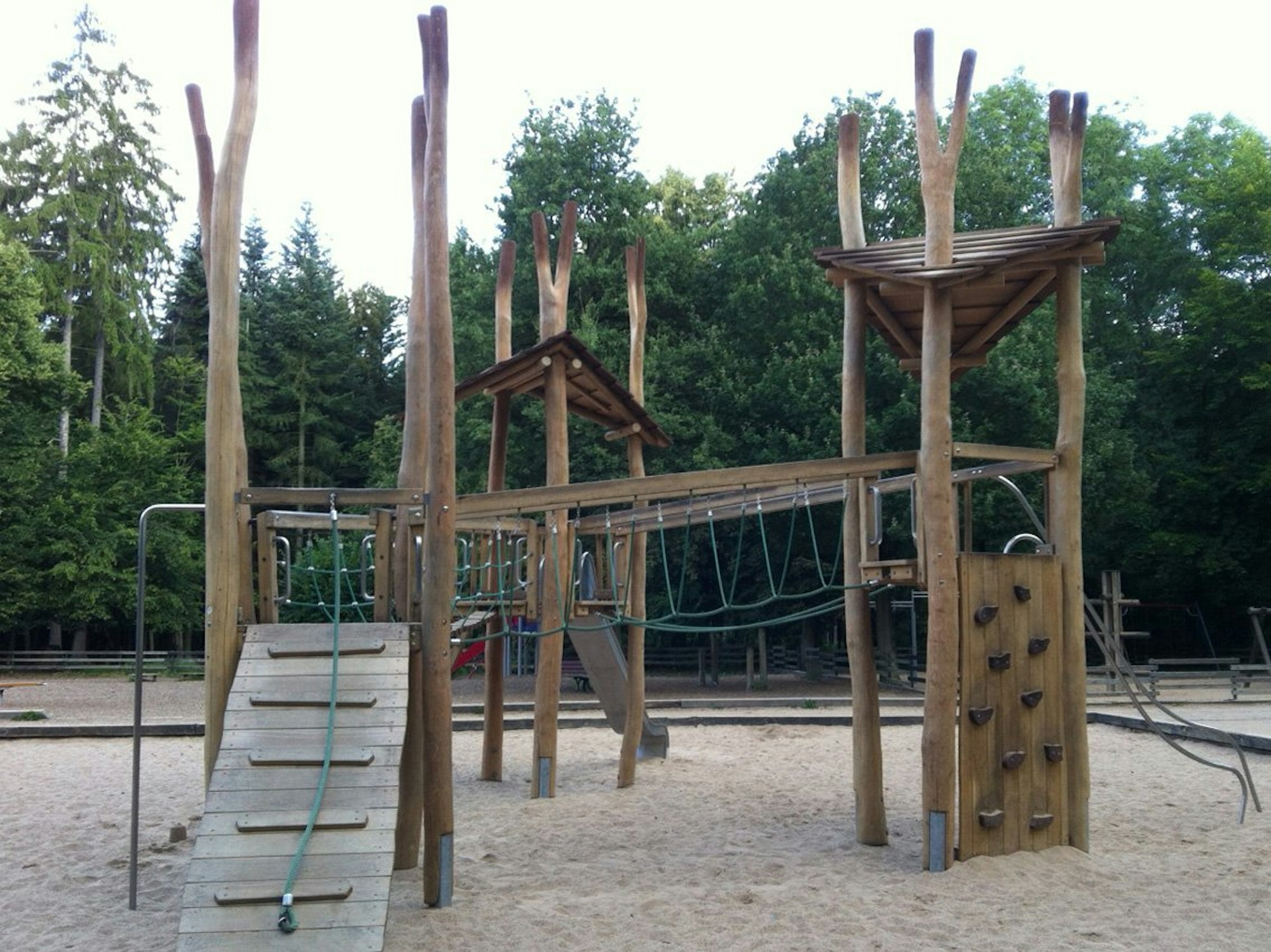 Besonderheiten: Der Spielplatz ist Bestandteil der Erlebniswelt Tannenbusch. Da er in den Wildpark integriert ist, können große und kleine Besucher nicht nur spielen, sondern auch eine Vielzahl heimischer Wild- und Haustiere in Ruhe beobachten.